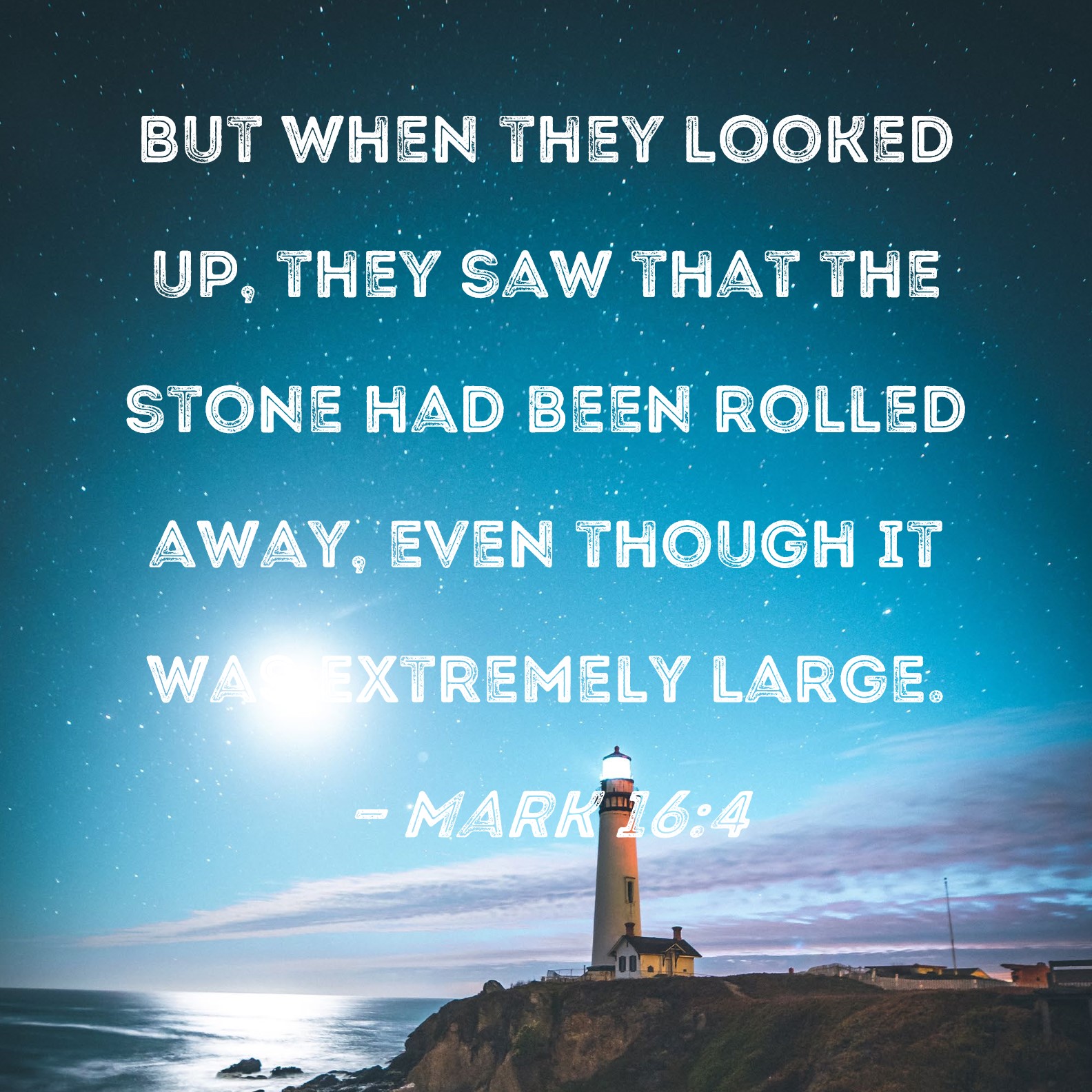 Mark 16:4 But when they looked up, they saw that the stone had been rolled away, even though it was extremely large.
