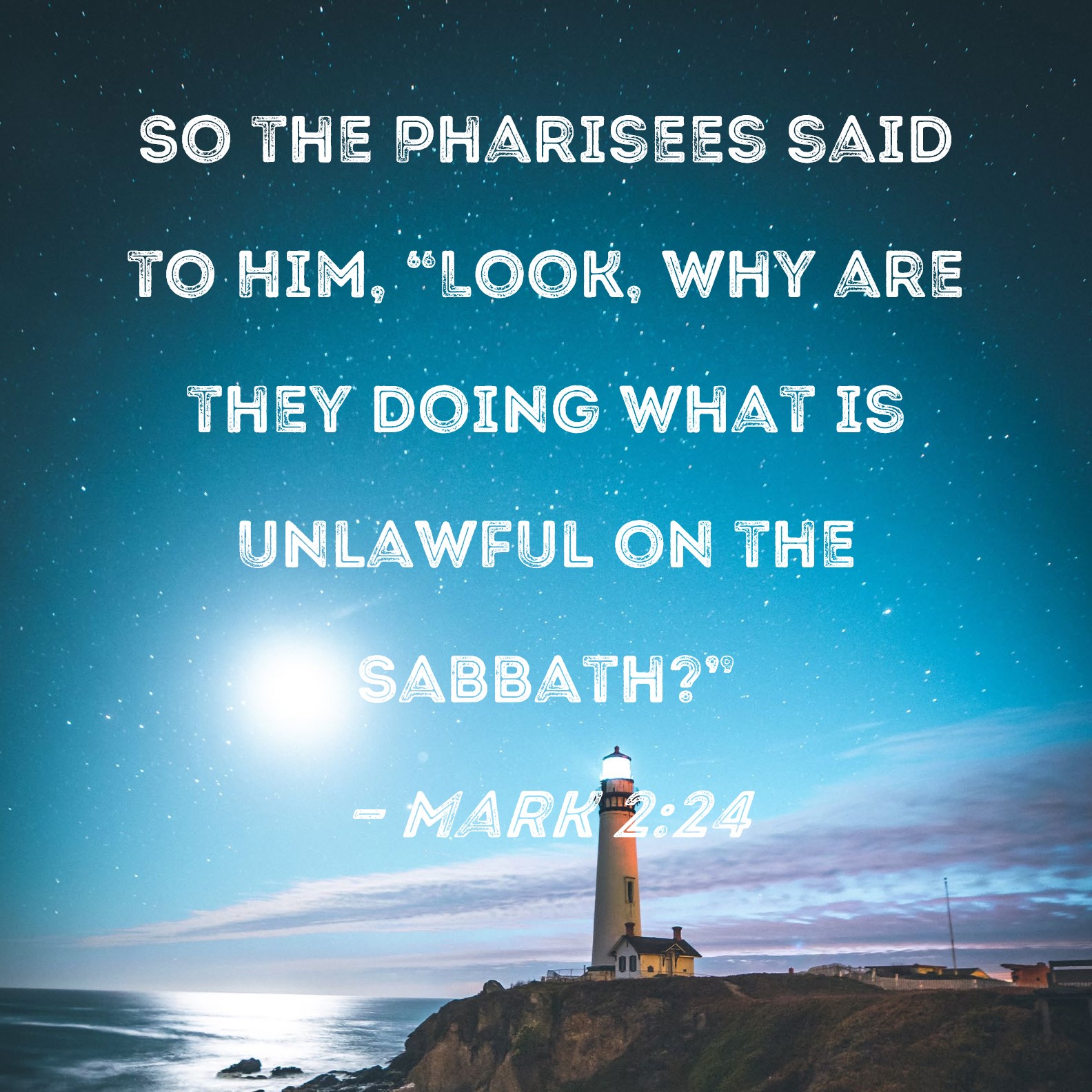 Mark 2:24 So the Pharisees said to Him, "Look, why are they doing what is unlawful on the Sabbath?"