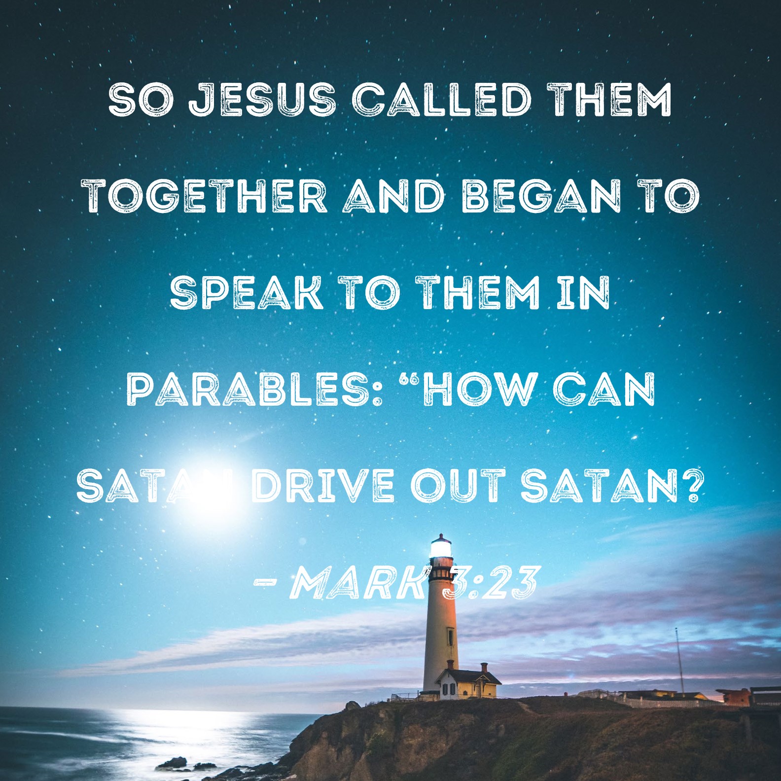 Mark 3:23 So Jesus called them together and began to speak to them in parables: "How can Satan drive out Satan?