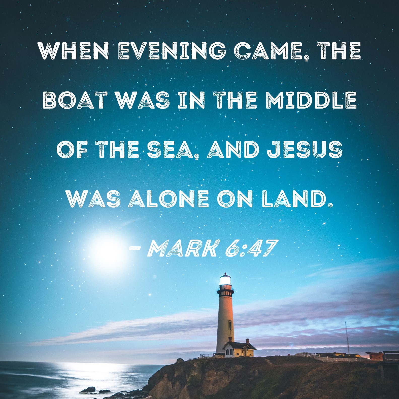 Mark 6:47 When evening came, the boat was in the middle of the sea, and Jesus was alone on land.