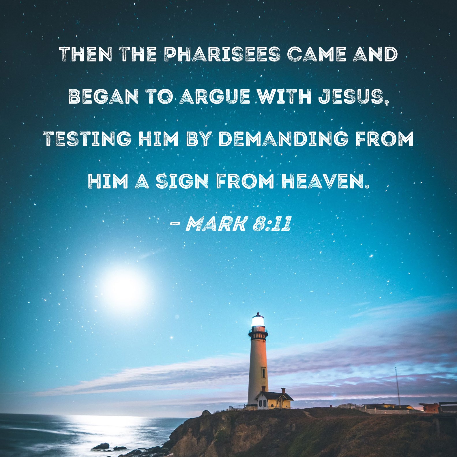 Mark 8:11 Then the Pharisees came and began to argue with Jesus, testing Him by demanding from Him a sign from heaven.