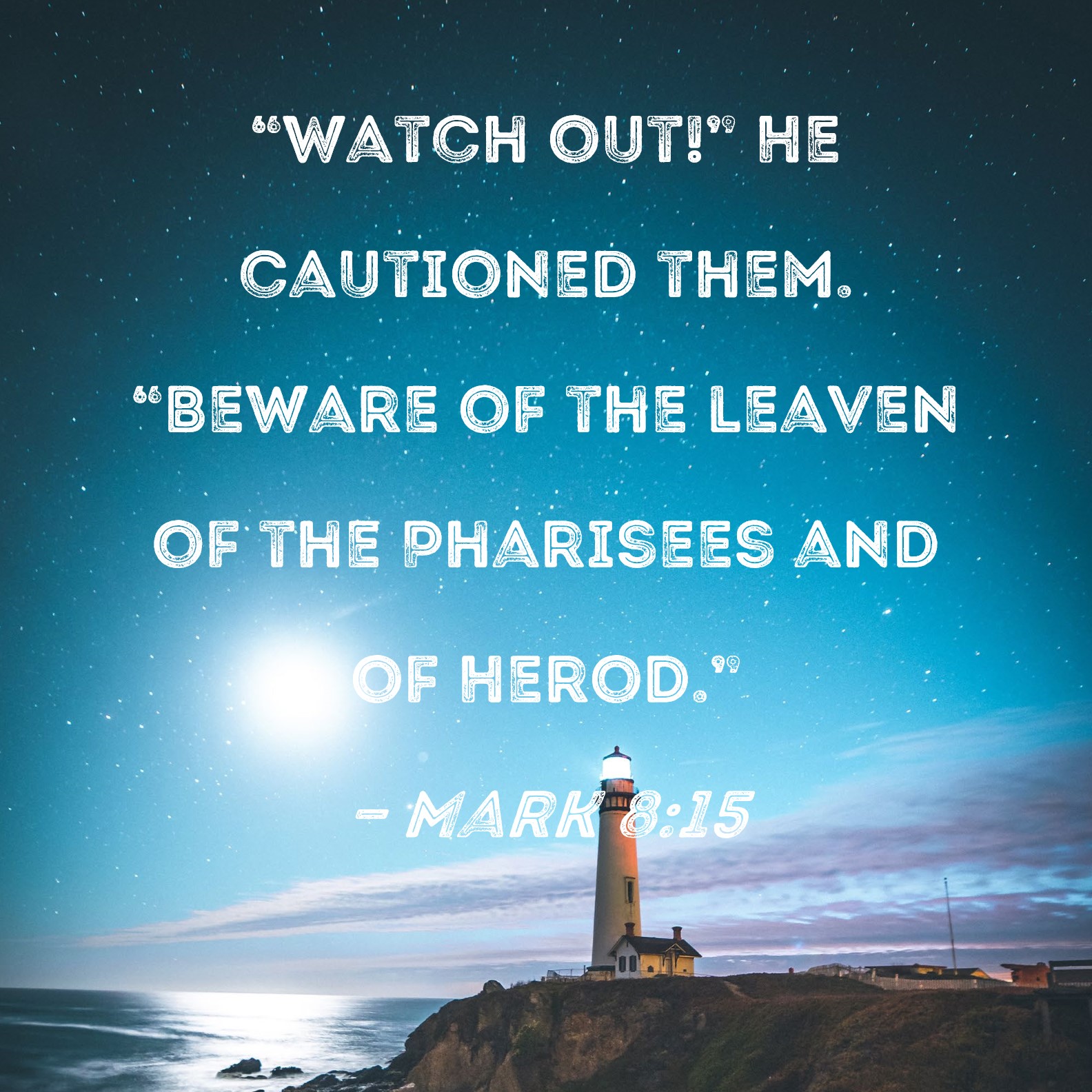 Mark 8:15 "Watch out!" He cautioned them. "Beware of the leaven of the Pharisees and of Herod."