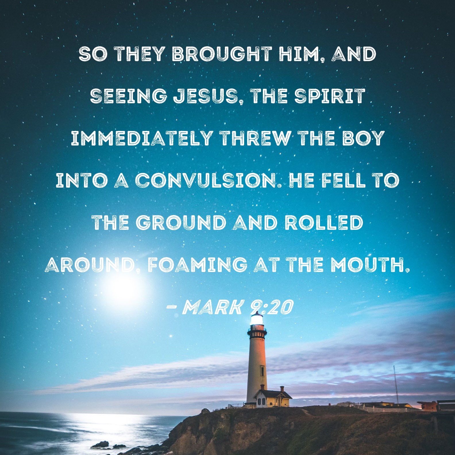 Mark 9:20 So they brought him, and seeing Jesus, the spirit immediately threw the boy into a convulsion. He fell to the ground and rolled around, foaming at the mouth.