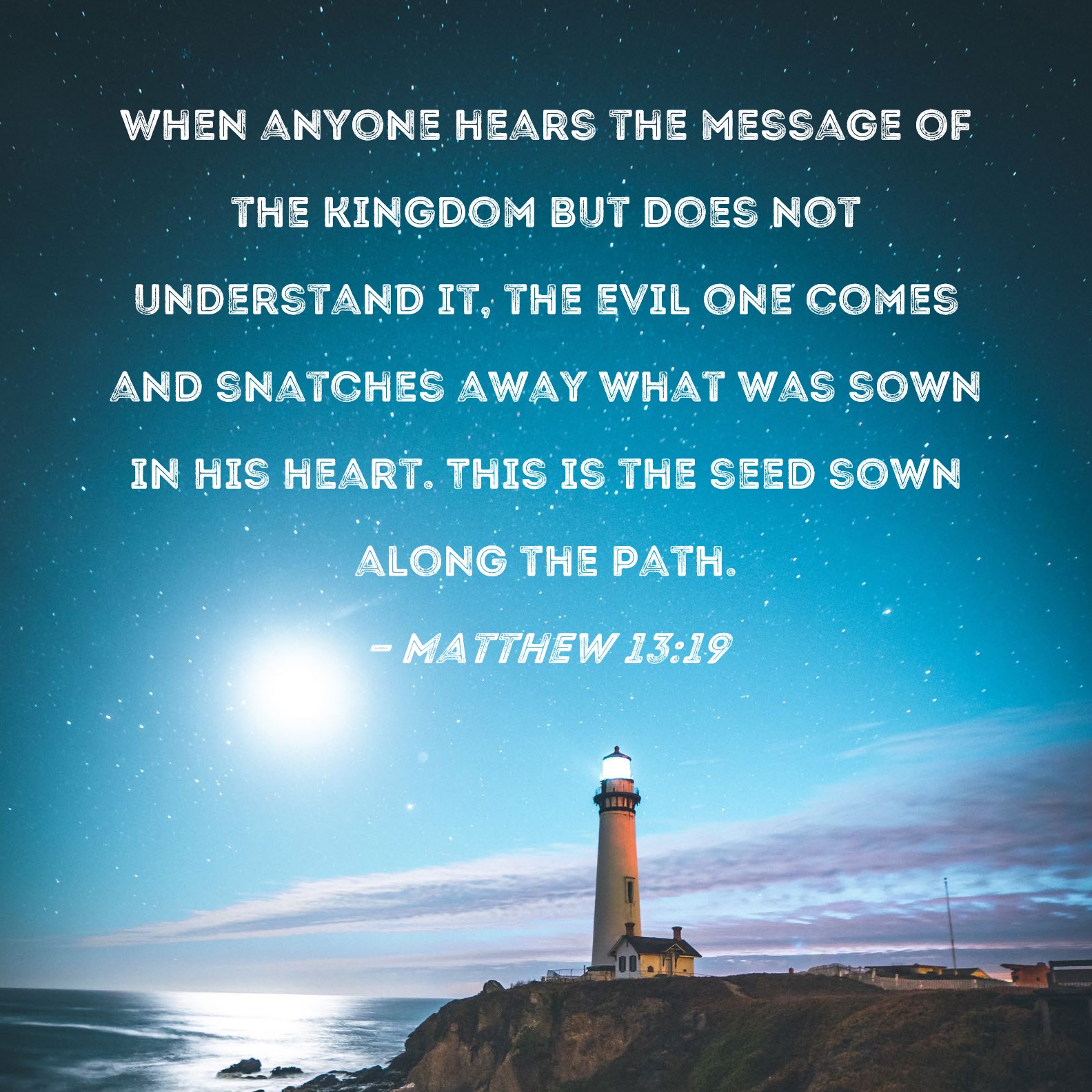 Matthew 13:19 When anyone hears the message of the kingdom but does not understand it, the evil one comes and snatches away what was sown in his heart. This is the seed sown along the path.