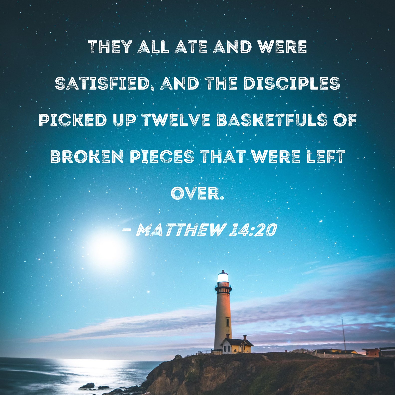 Matthew 14:20 They all ate and were satisfied, and the disciples picked up twelve basketfuls of broken pieces that were left over.