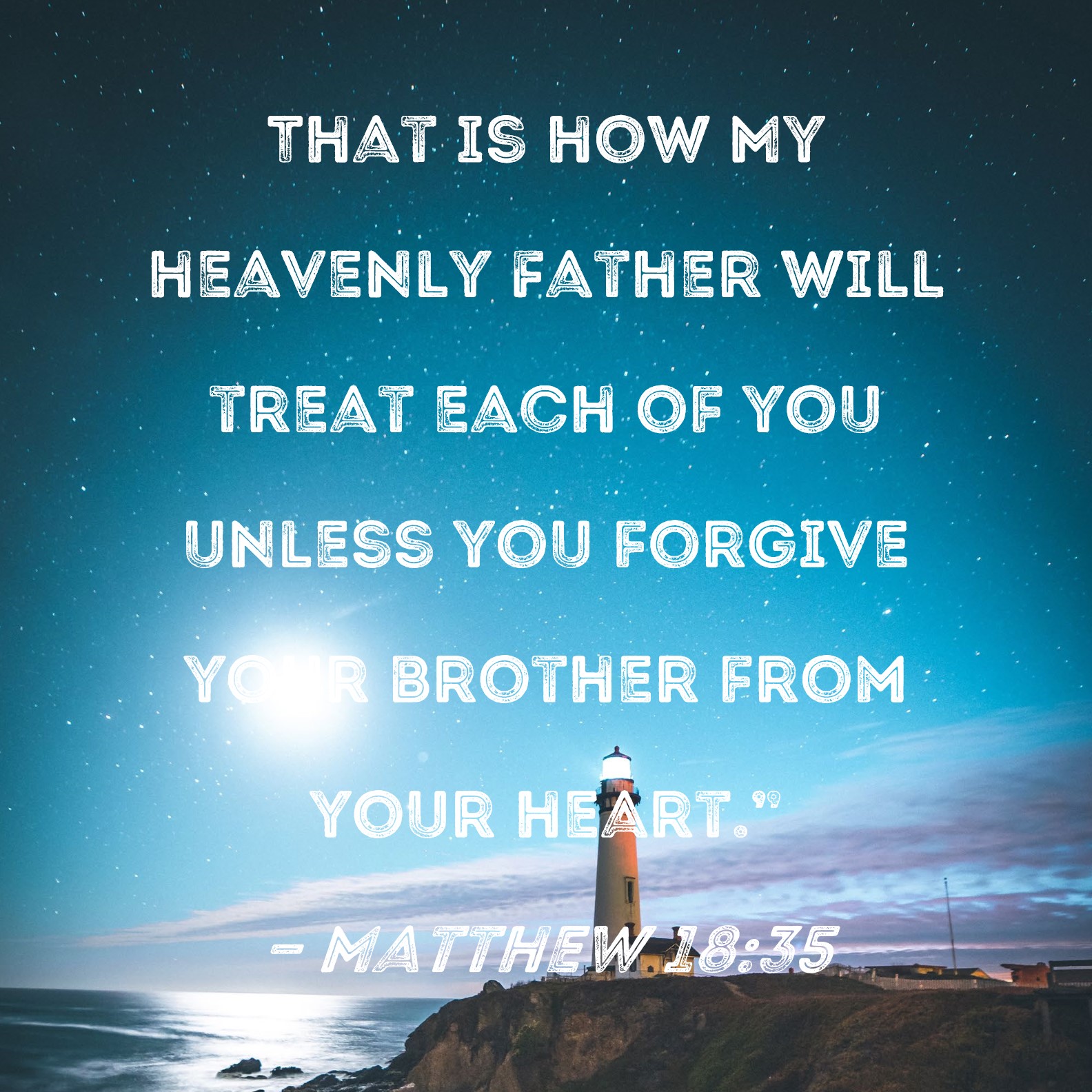 Matthew 18:35 That is how My heavenly Father will treat each of you unless you forgive your brother from your heart."
