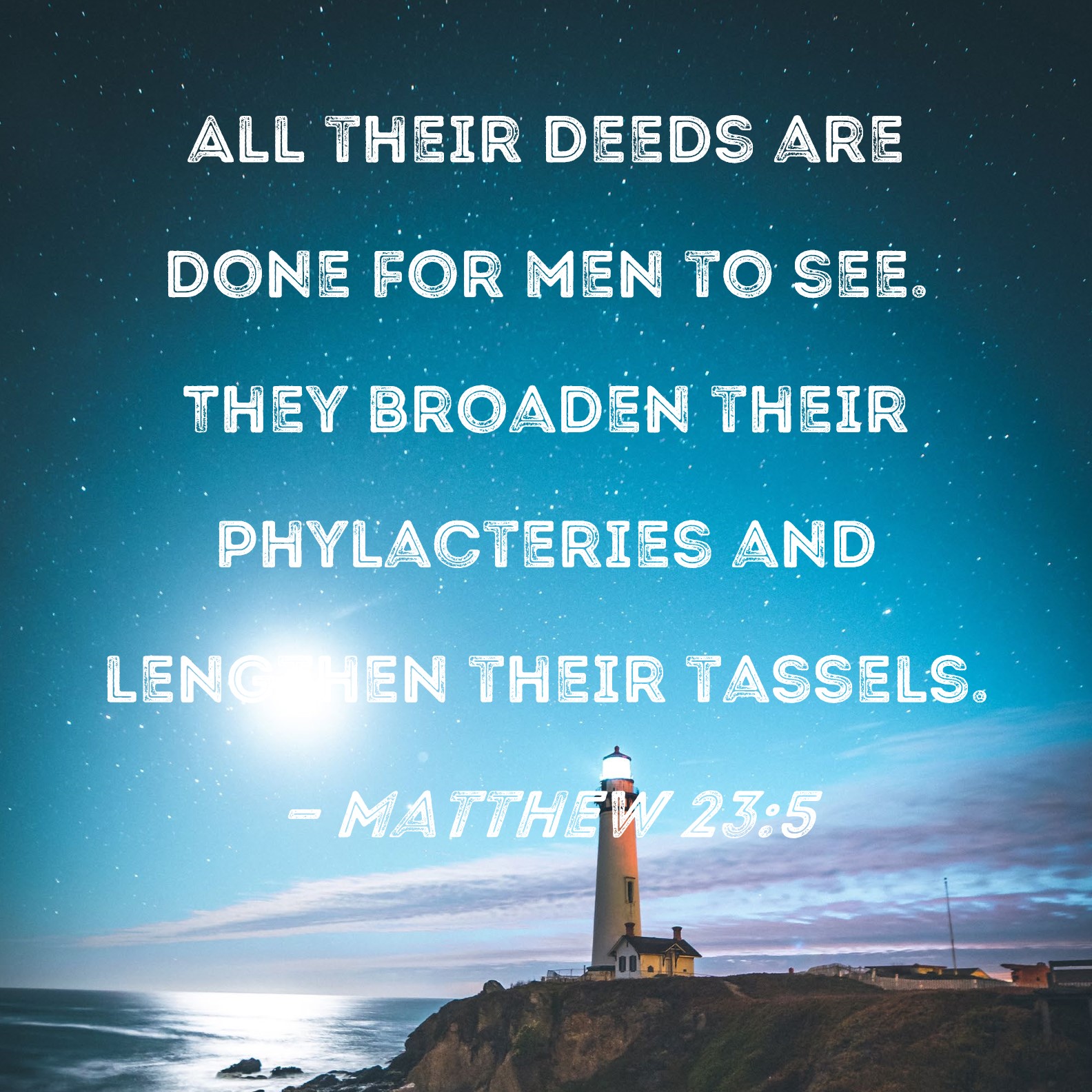 Matthew 23:5 All their deeds are done for men to see. They broaden their phylacteries and lengthen their tassels.
