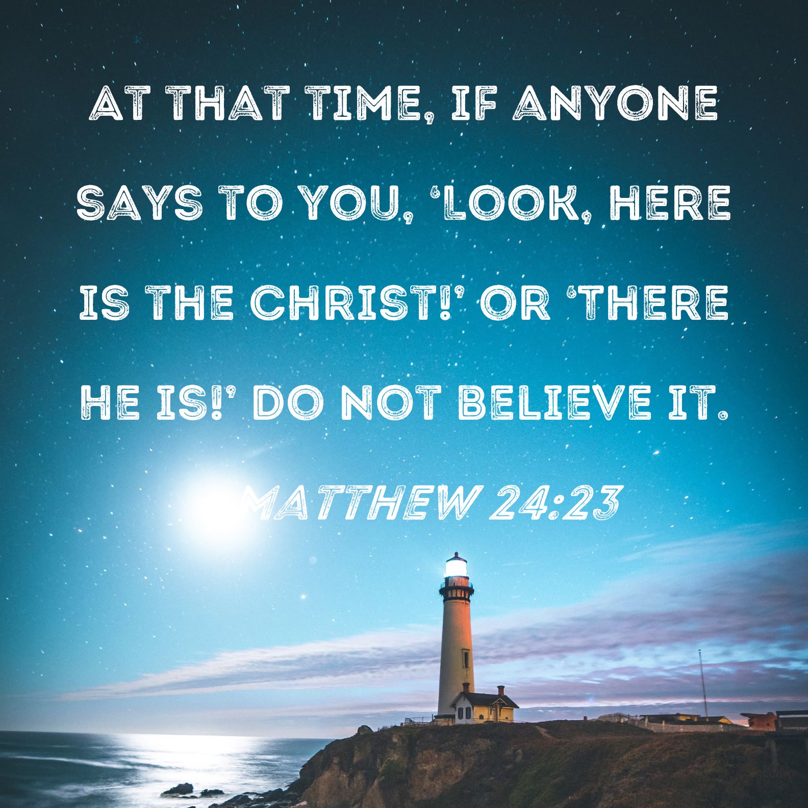 Matthew 24:23 At that time, if anyone says to you, 'Look, here is the Christ!' or 'There He is!' do not believe it.