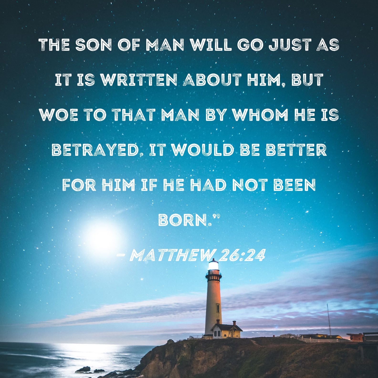 Matthew 26:24 The Son of Man will go just as it is written about Him, but woe to that man by whom He is betrayed. It would be better for him if he had not been born."