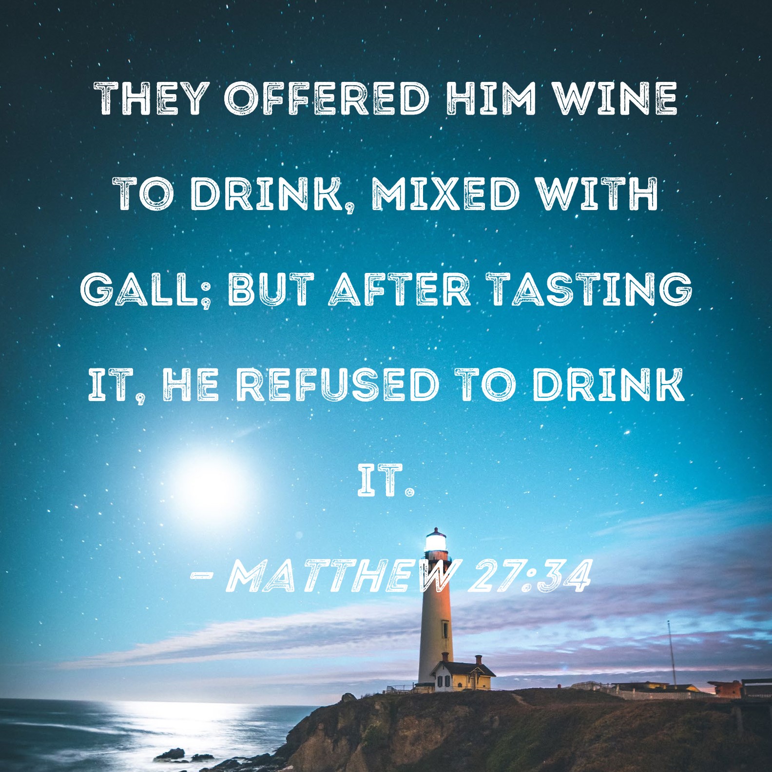 Matthew 27:34 they offered Him wine to drink, mixed with gall; but after tasting it, He refused to drink it.