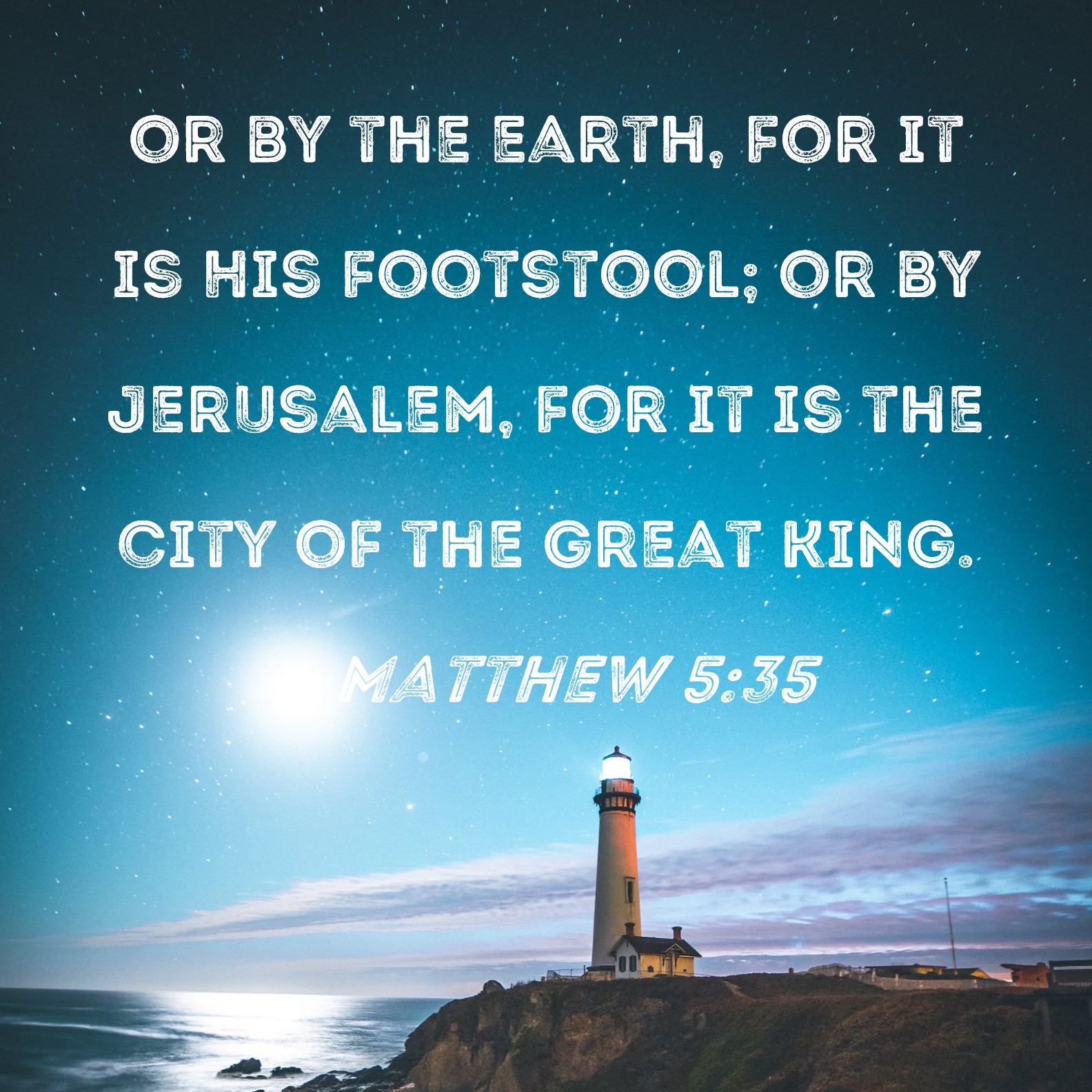 Matthew 5:35 or by the earth, for it is His footstool; or by Jerusalem, for it is the city of the great King.