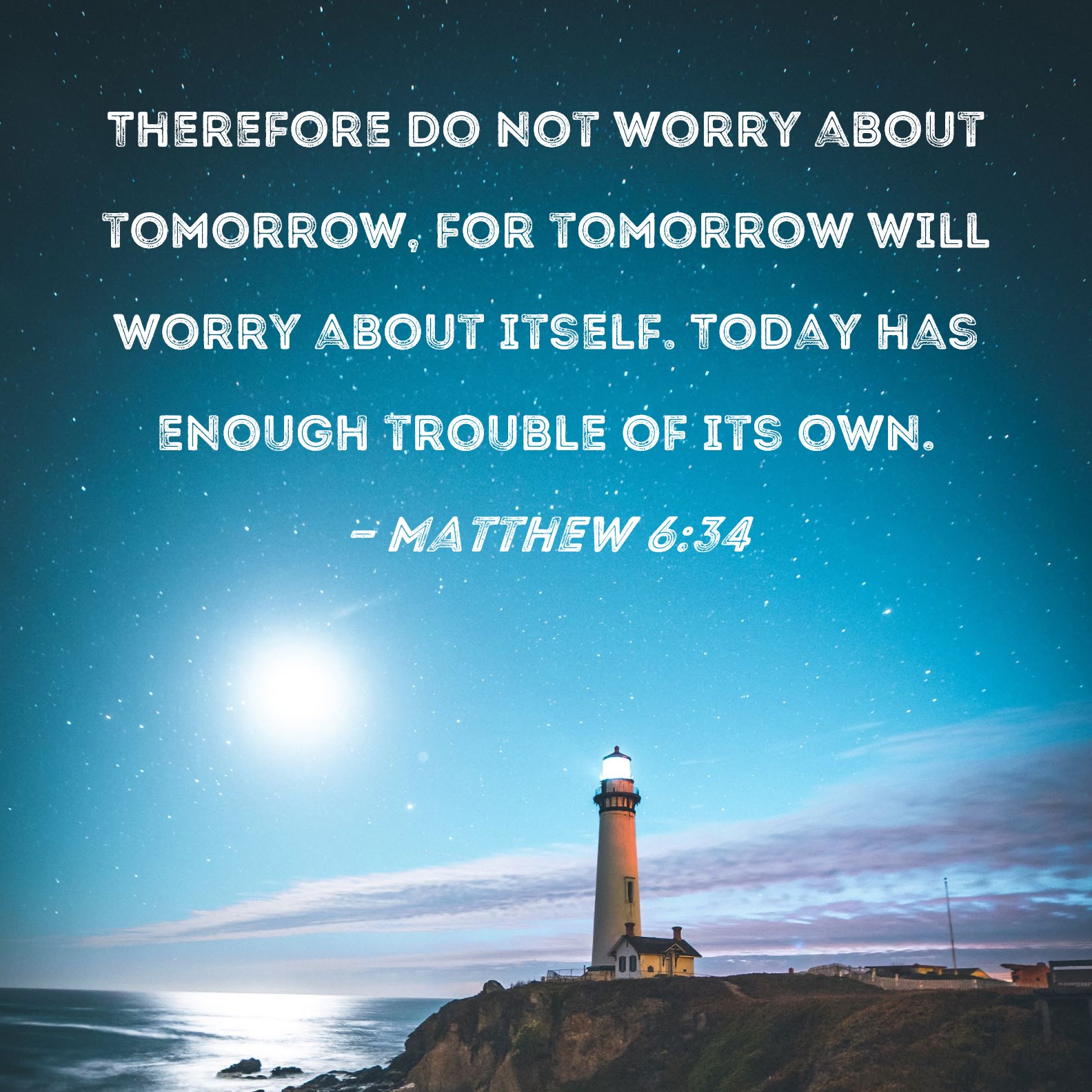 Matthew 6:34 Therefore do not worry about tomorrow, for tomorrow will worry about itself. Today has enough trouble of its own.