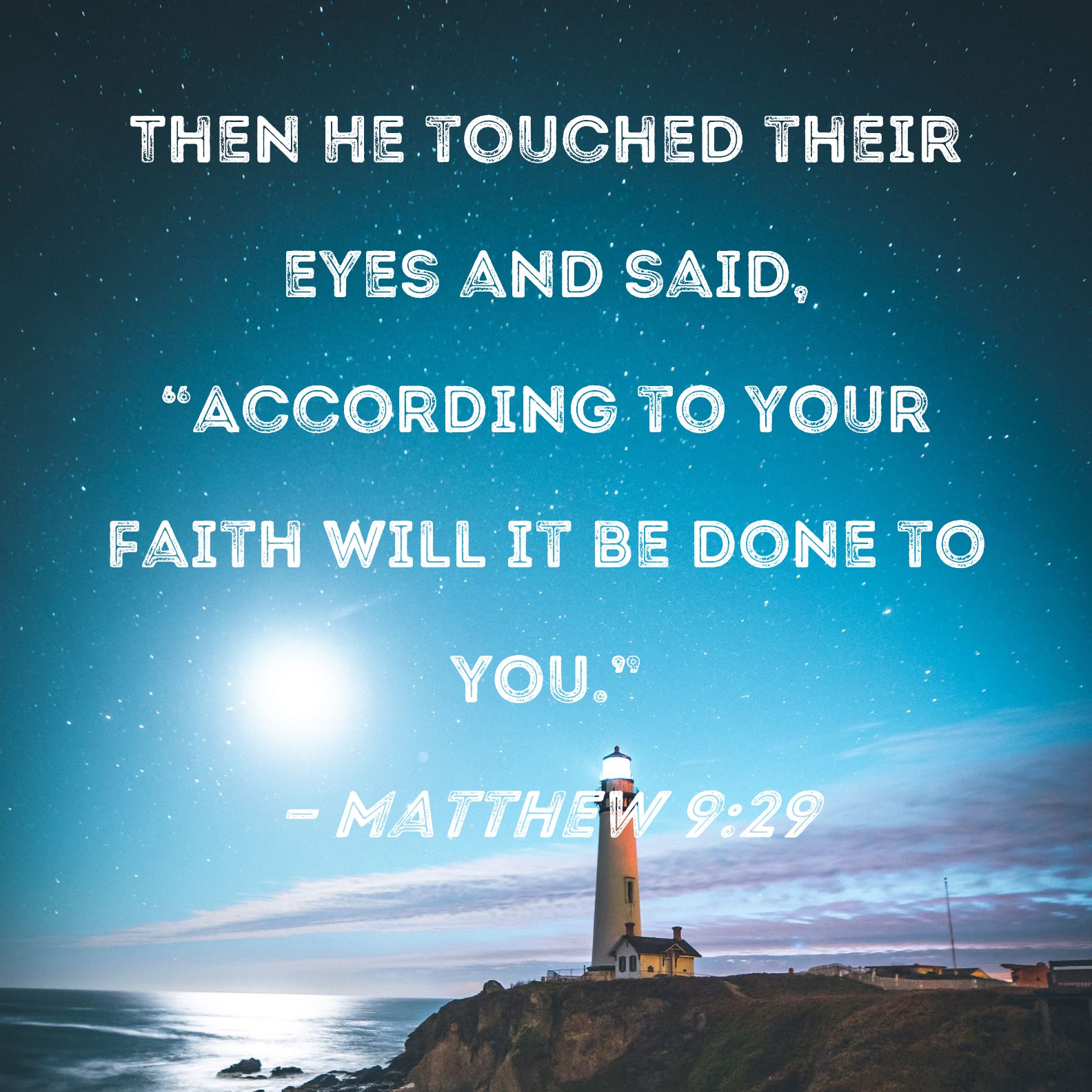 Matthew 9:29 Then He touched their eyes and said, "According to your faith will it be done to you."