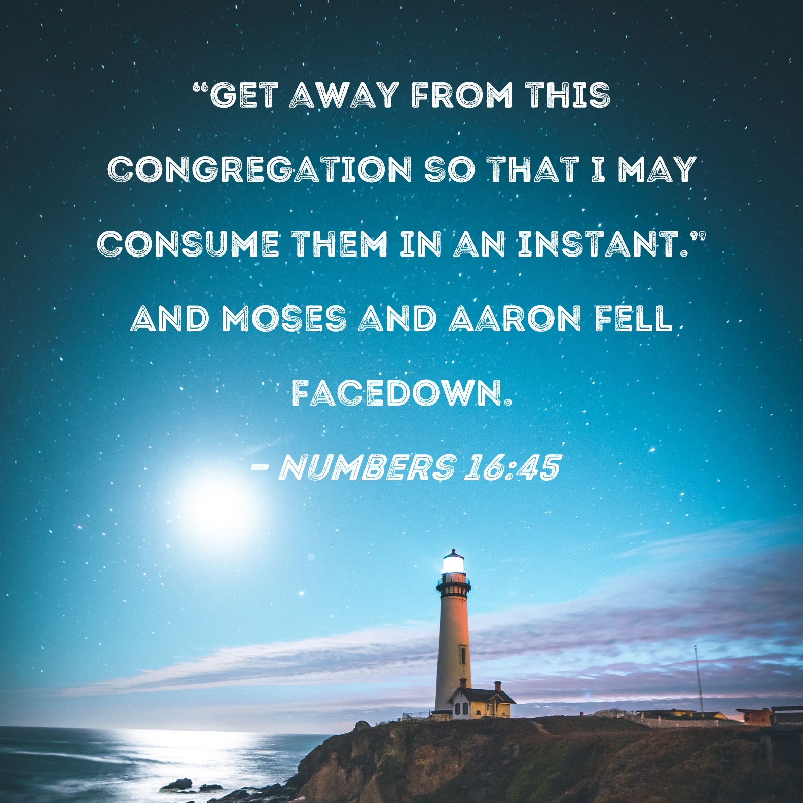 "Get away from this congregation so that I may consume them in an instant." And Moses and Aaron fell facedown.