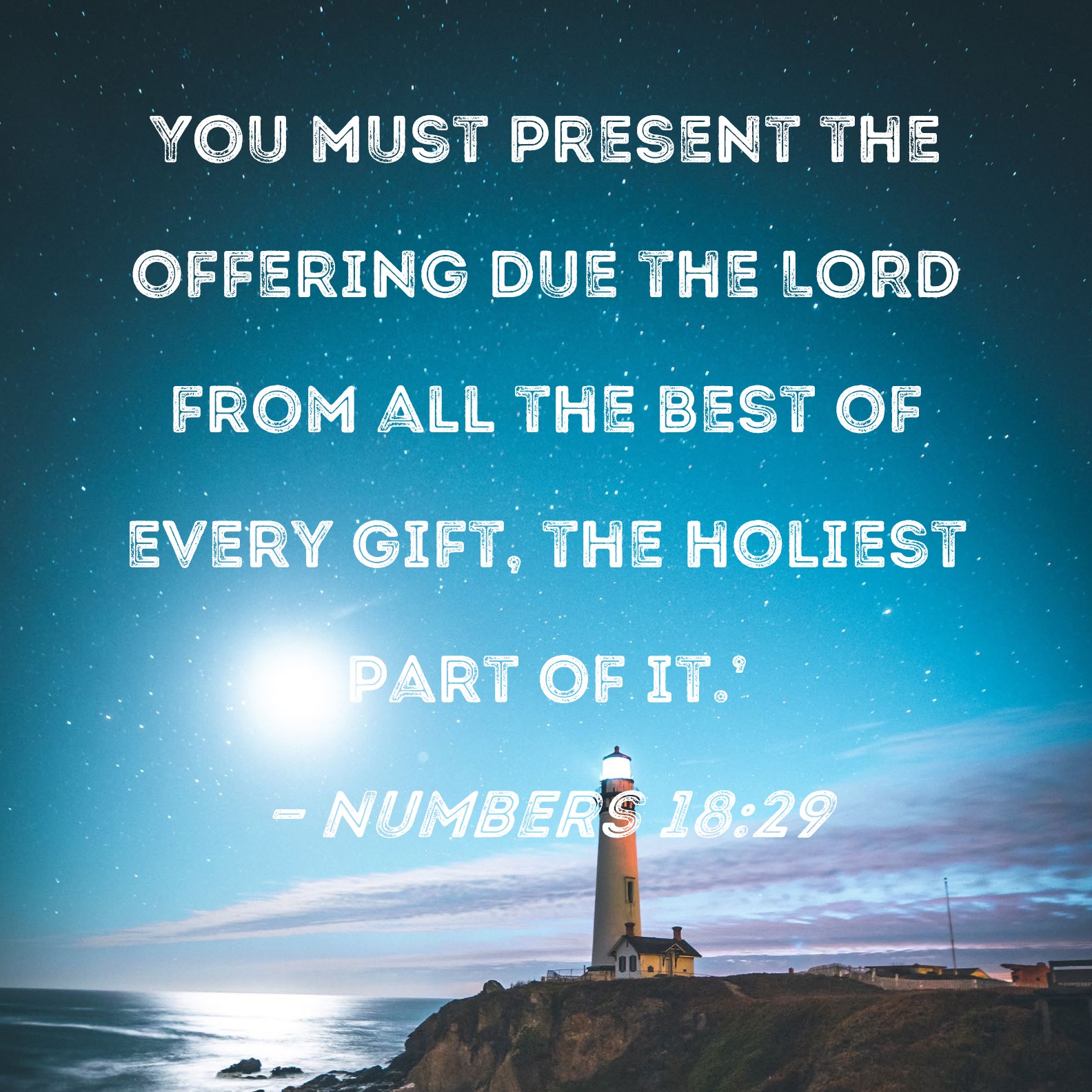 Numbers 18:29 You must present the offering due the LORD from all the best of every gift, the holiest part of it.'
