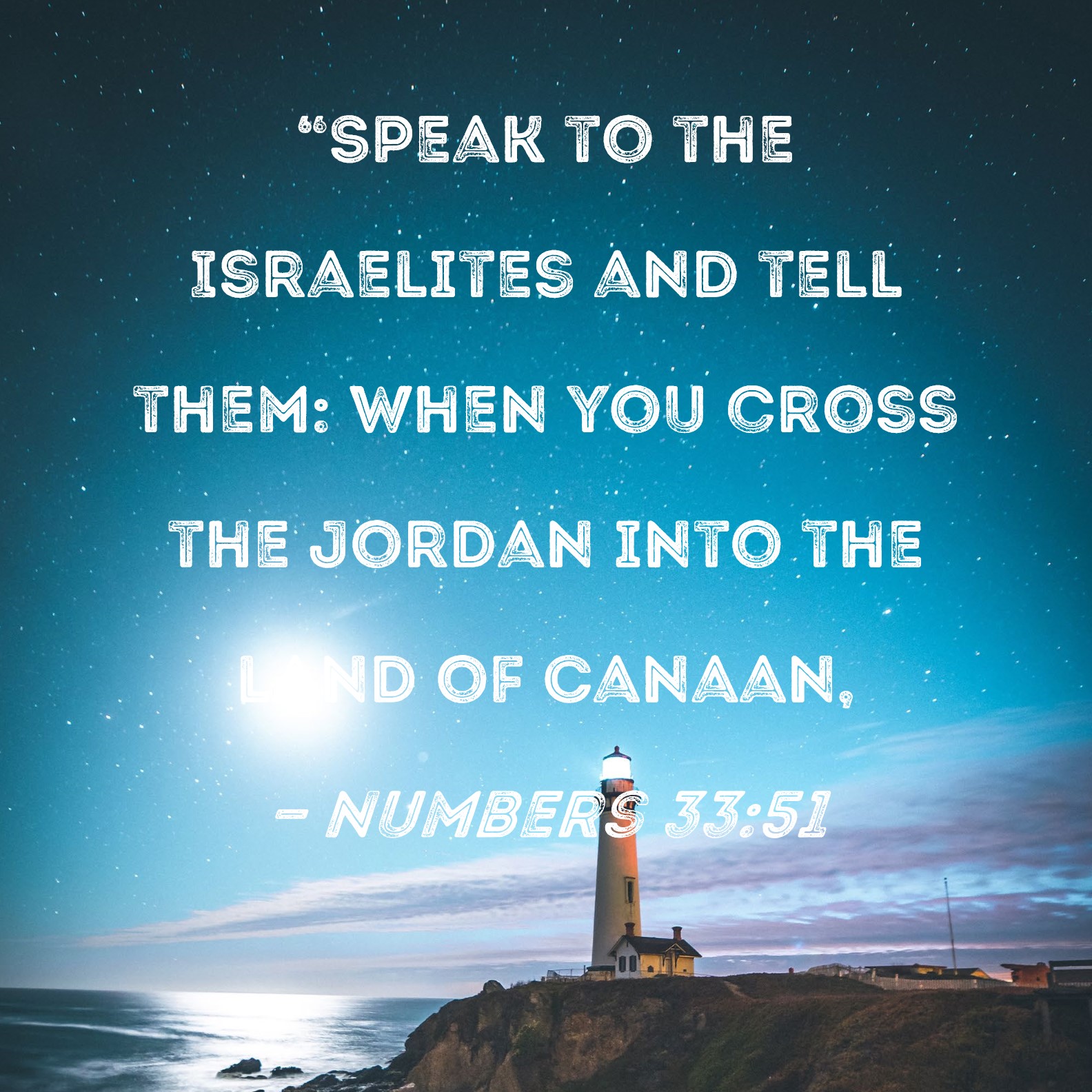 Numbers 33:51 "Speak to the Israelites and tell them: When you cross the Jordan into the land of Canaan,