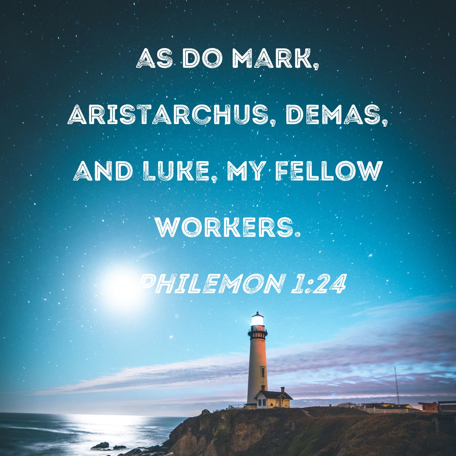 Philemon 1:24 as do Mark, Aristarchus, Demas, and Luke, my fellow workers.