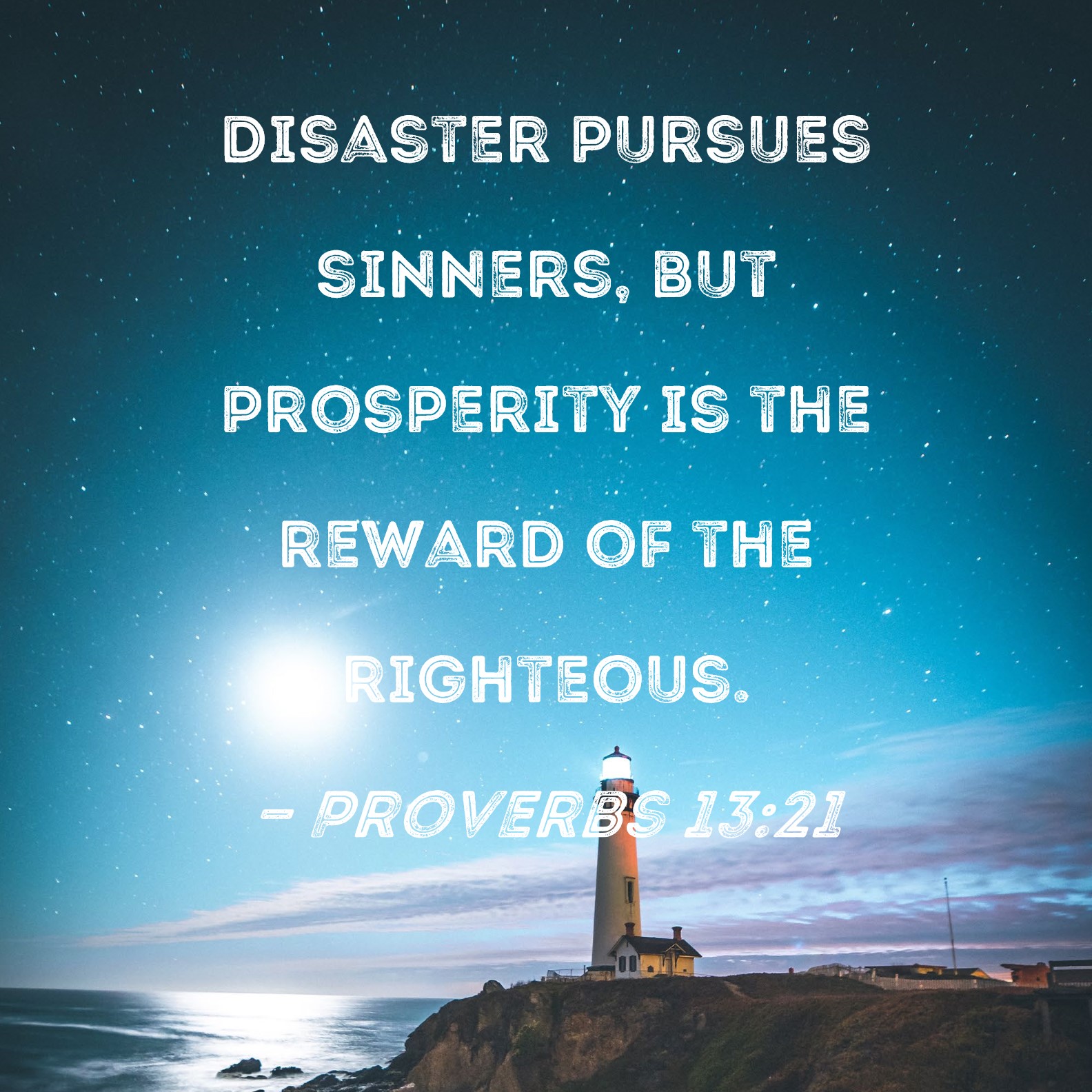 Proverbs 13:21 Disaster pursues sinners, but prosperity is the reward of the righteous.