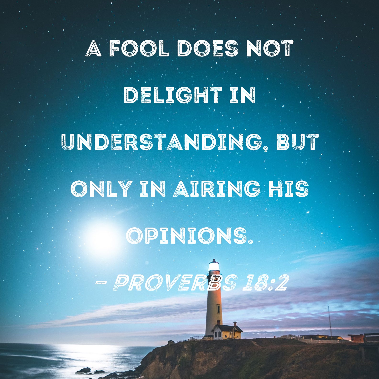 Proverbs 18:2 A fool does not delight in understanding, but only in airing his opinions.