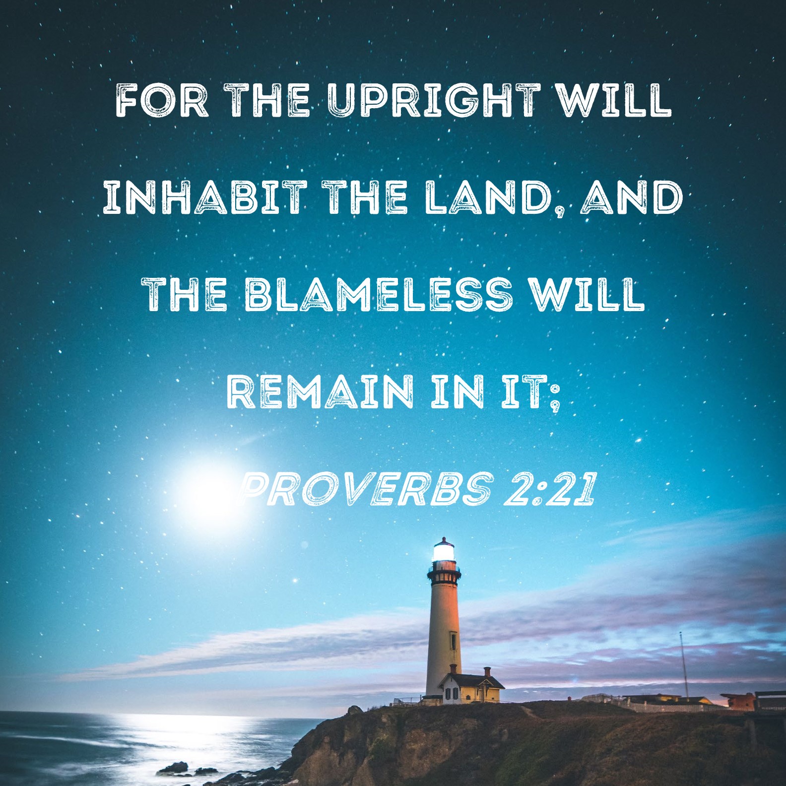Proverbs 2:21 For the upright will inhabit the land, and the blameless will remain in it;