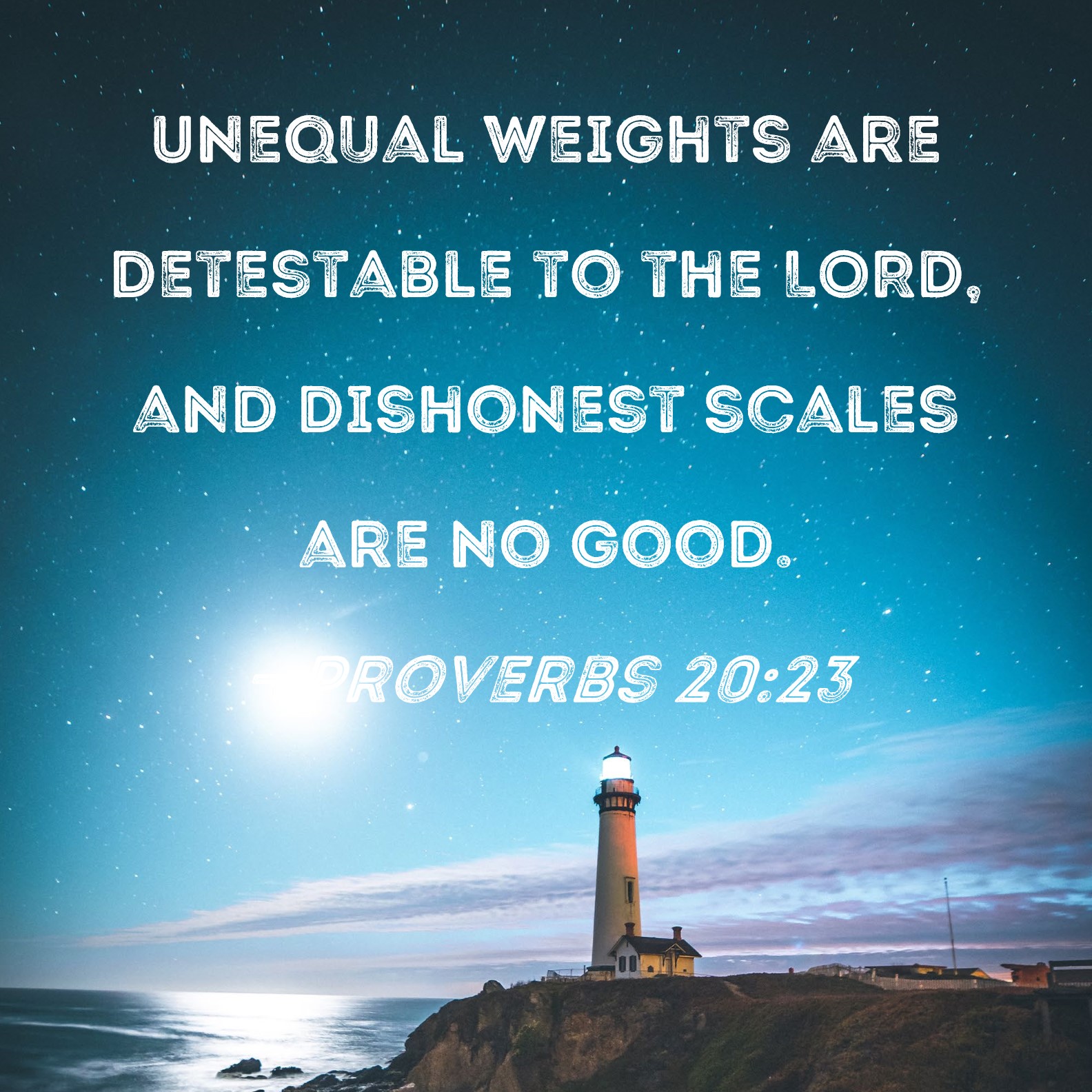 Proverbs 20:23 Unequal weights are detestable to the LORD, and dishonest scales are no good.
