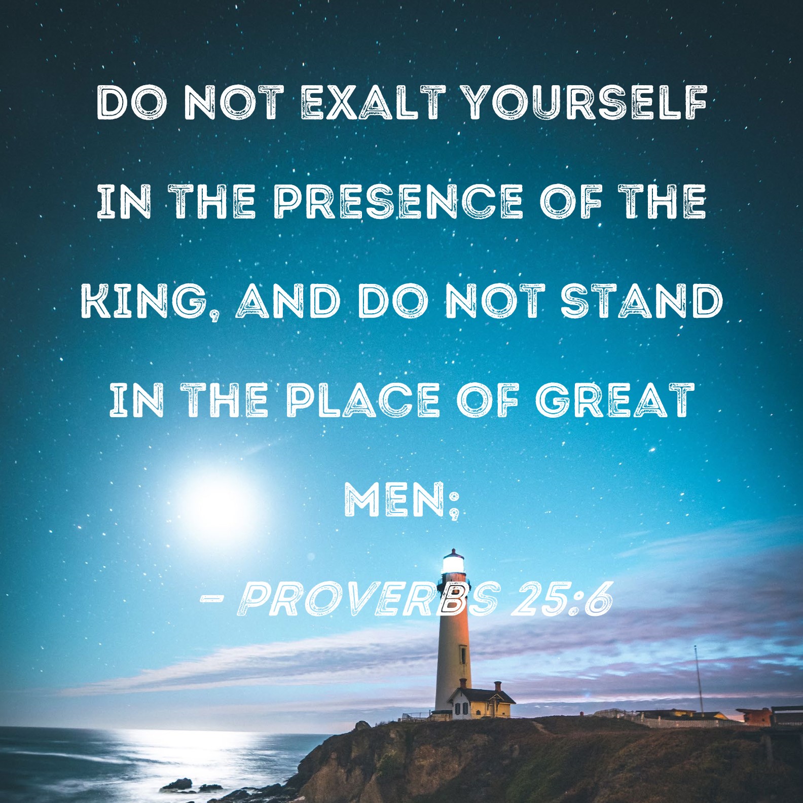 Proverbs 25:6 Do not exalt yourself in the presence of the king, and do not stand in the place of great men;