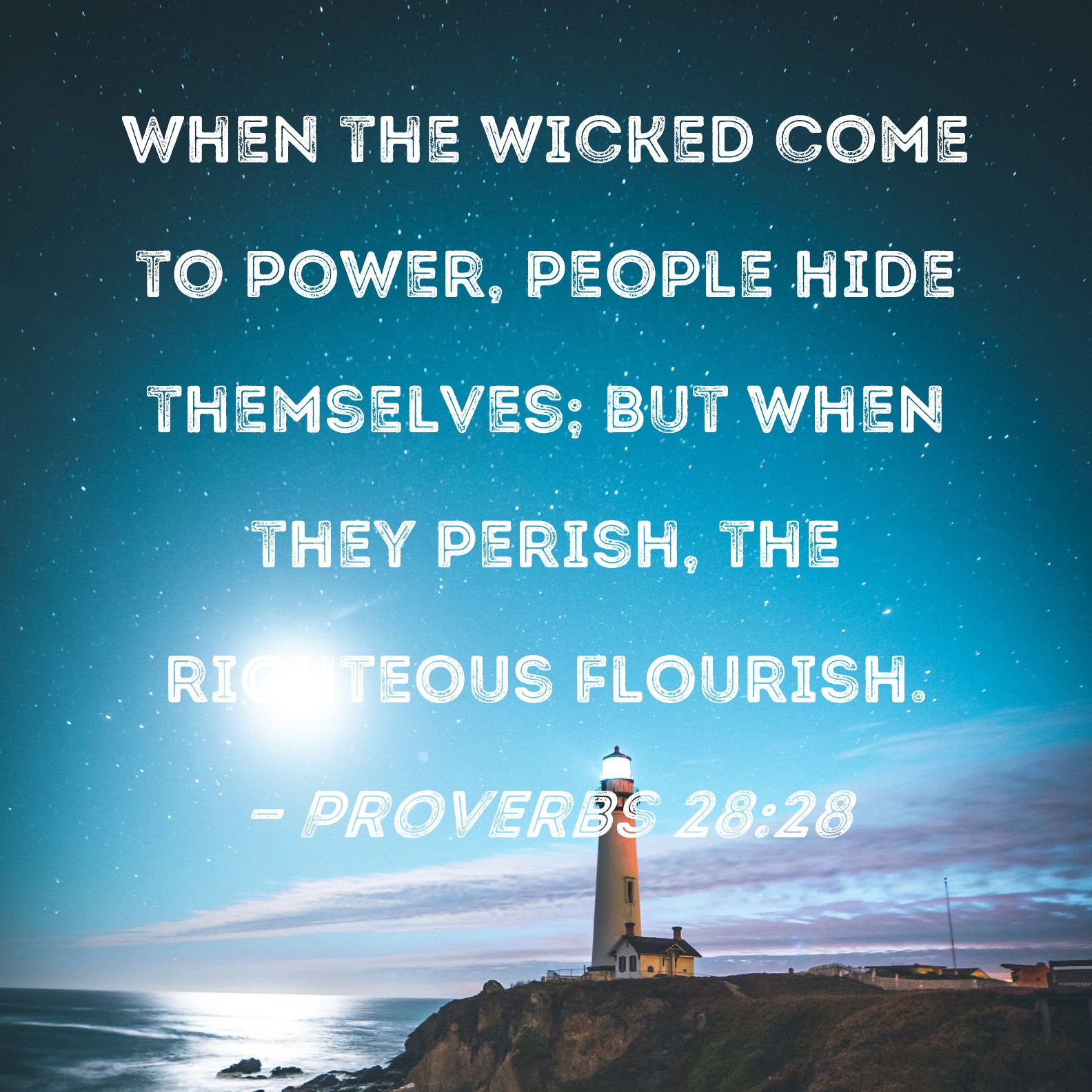 Proverbs 28:28 When the wicked come to power, people hide themselves; but when they perish, the righteous flourish.