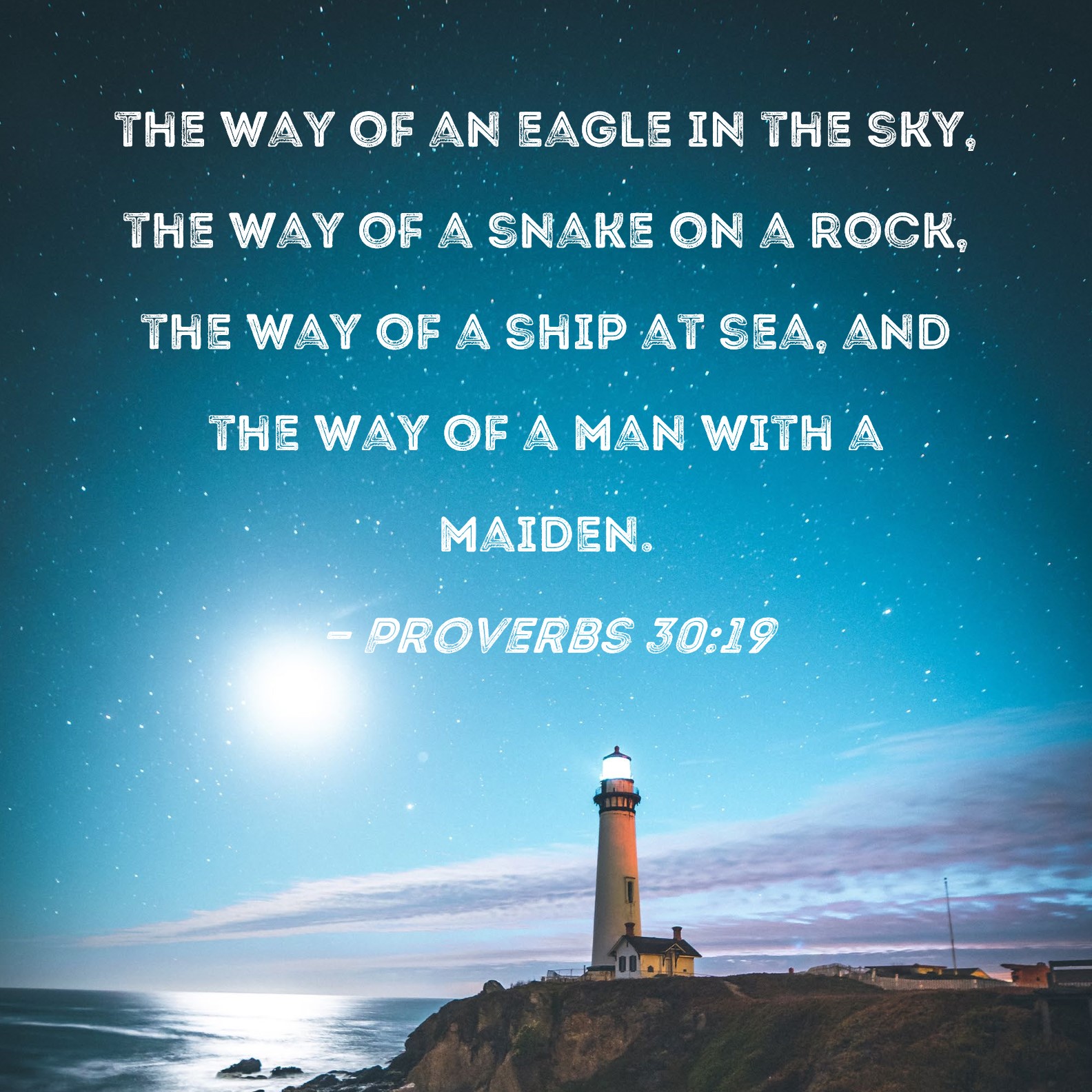 Proverbs 30:19 the way of an eagle in the sky, the way of a snake on a rock, the way of a ship at sea, and the way of a man with a maiden.