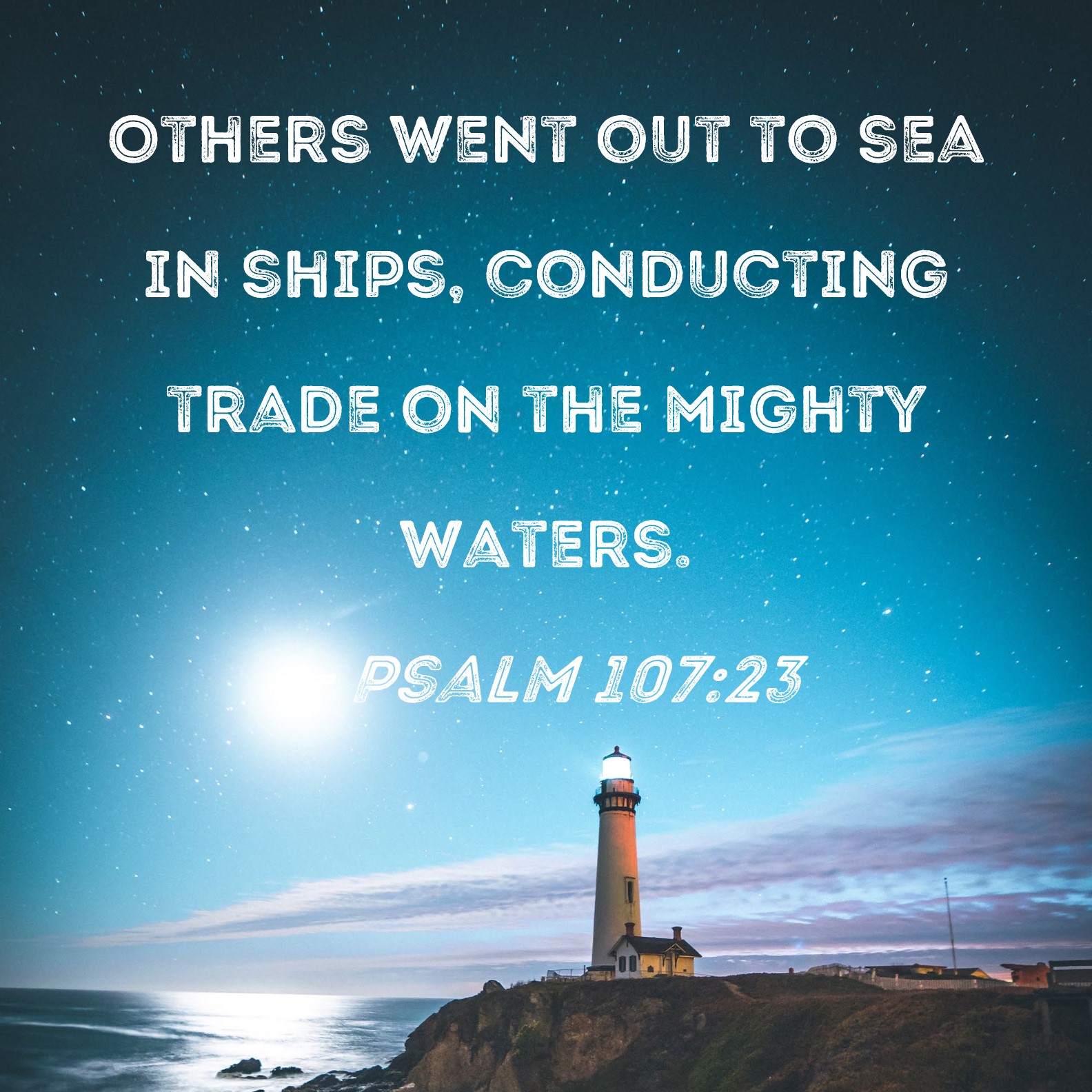 Psalm 107:23 Others went out to sea in ships, conducting trade on the mighty waters.