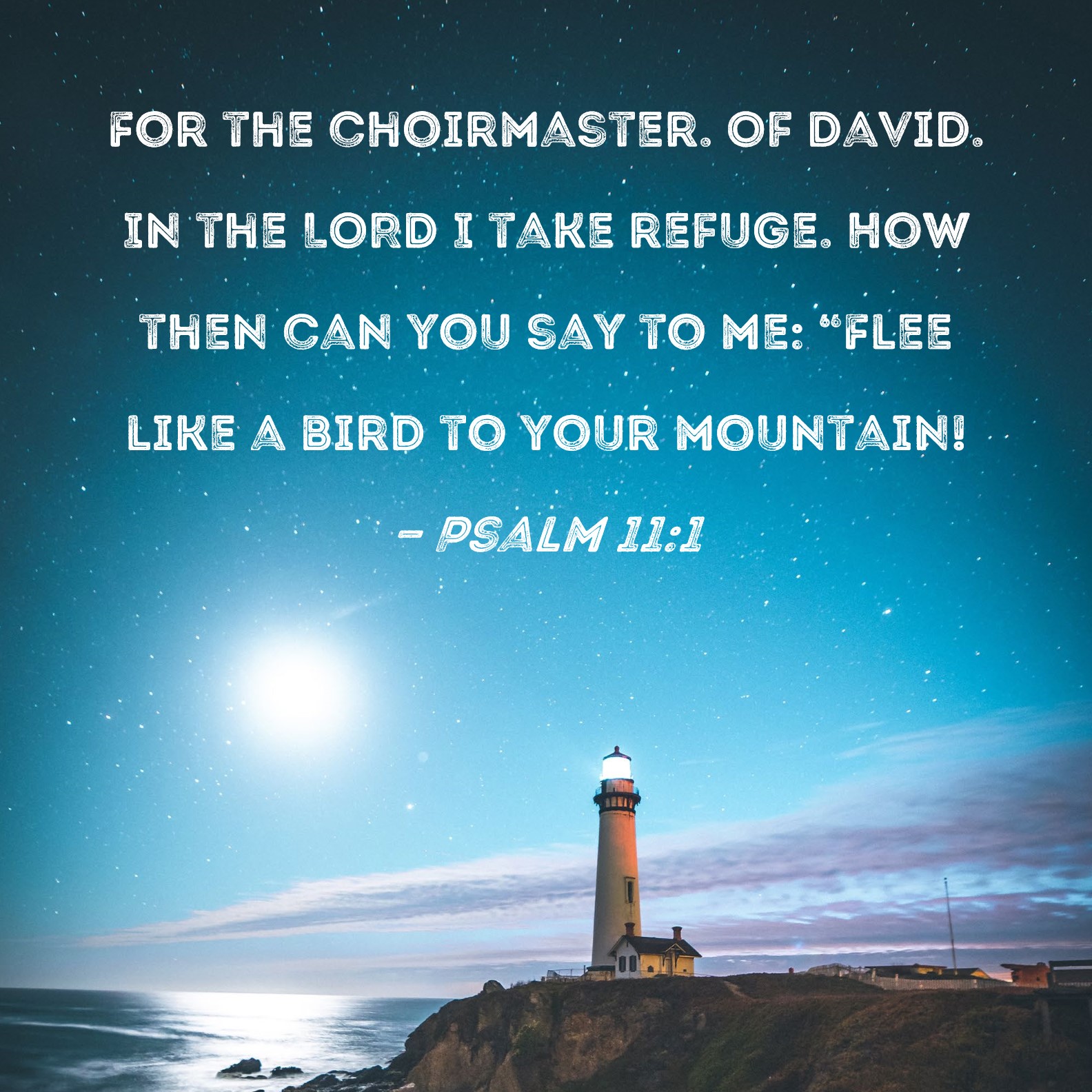 Psalm 11:1 For the choirmaster. Of David. In the LORD I take refuge. How then can you say to me: "Flee like a bird to your mountain!
