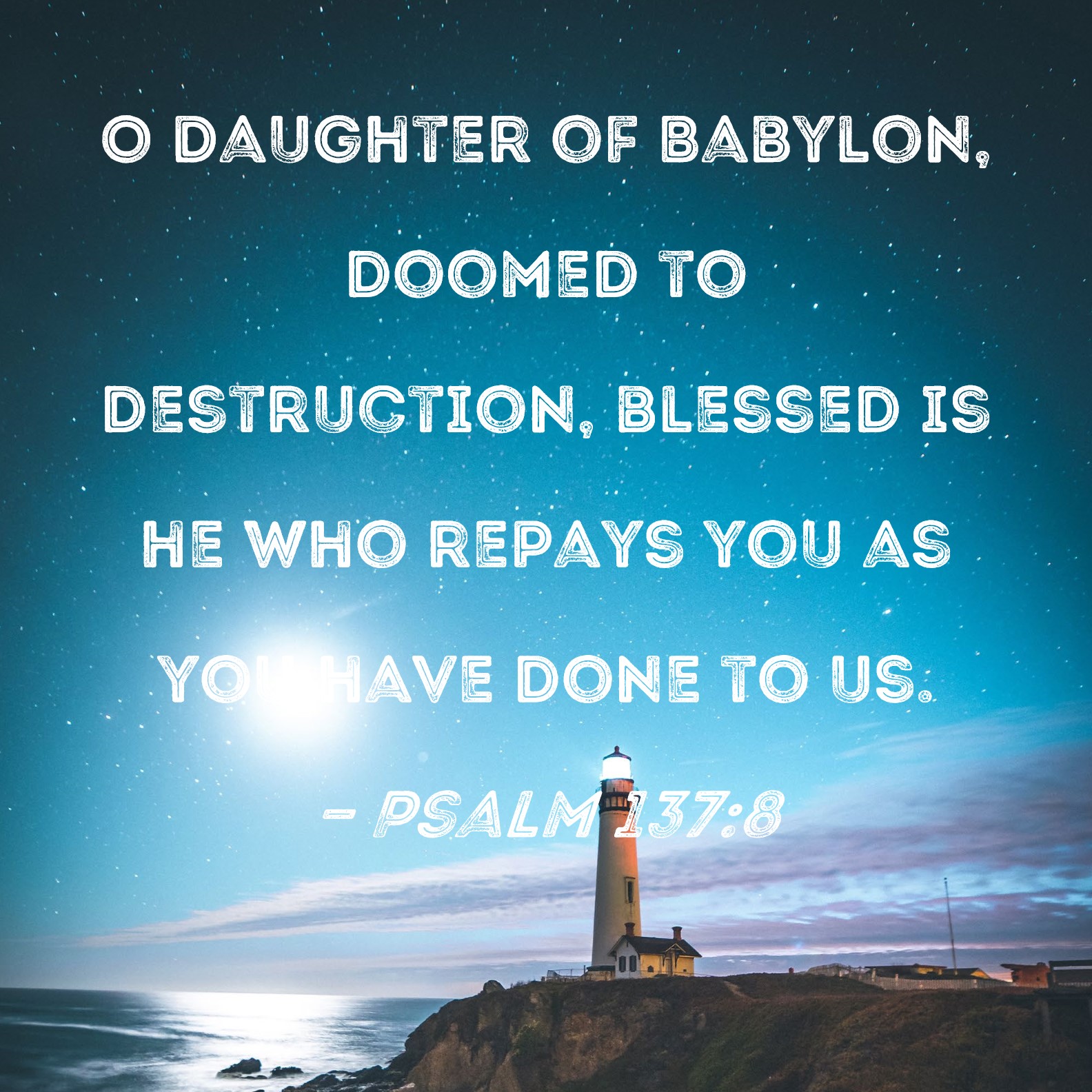 Psalm 137:8 O Daughter of Babylon, doomed to destruction, blessed is he who repays you as you have done to us.