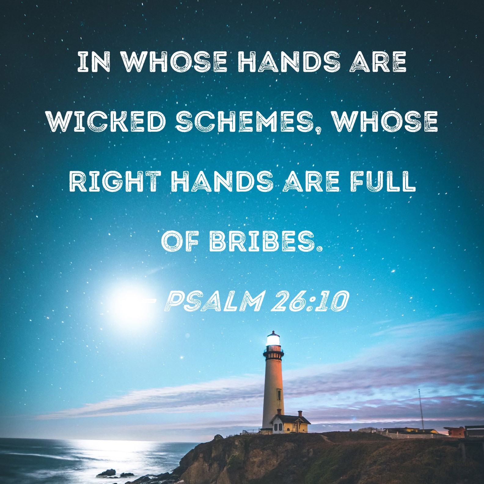 Psalm 26:10 in whose hands are wicked schemes, whose right hands are full of bribes.