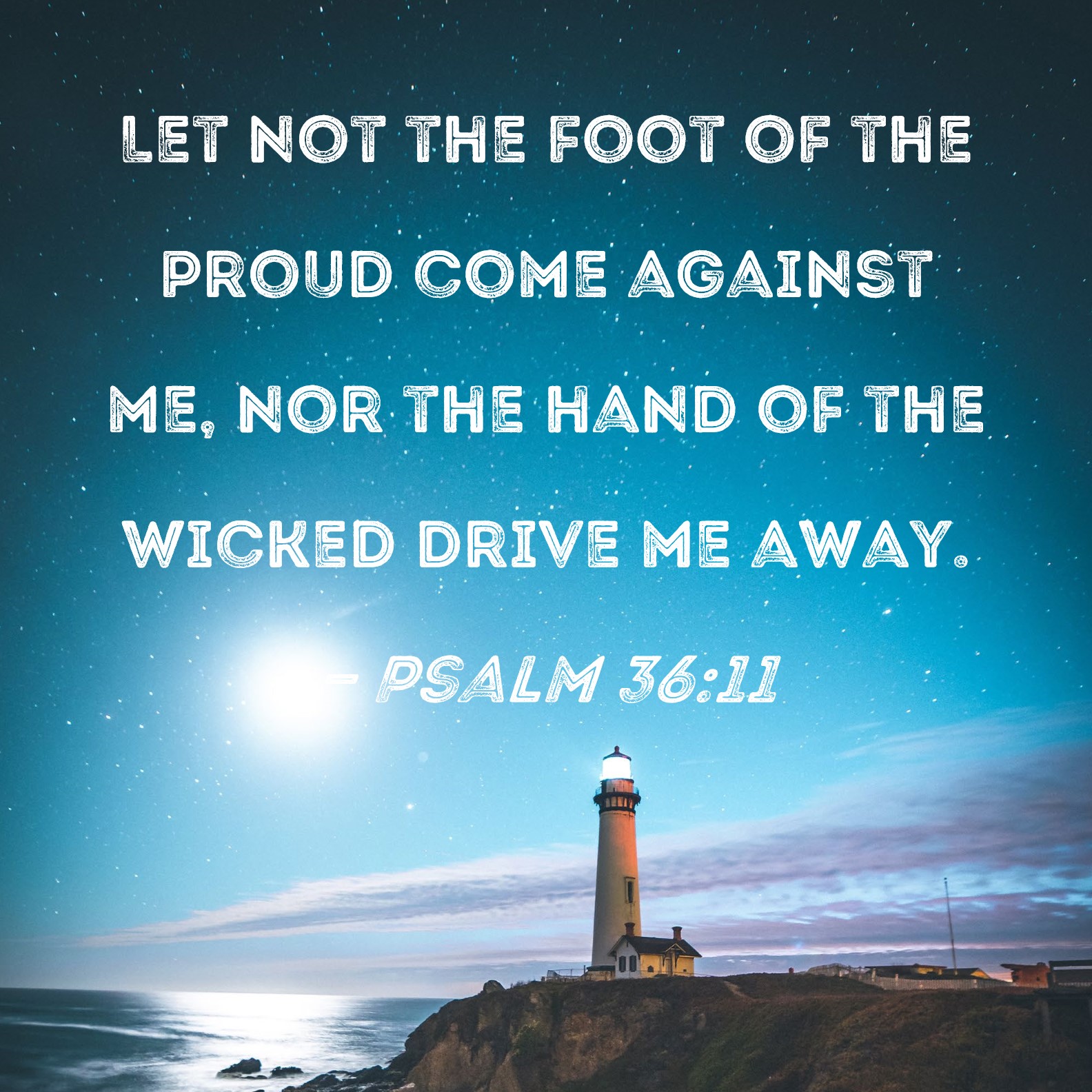 Psalm 36:11 Let not the foot of the proud come against me, nor the hand of the wicked drive me away.