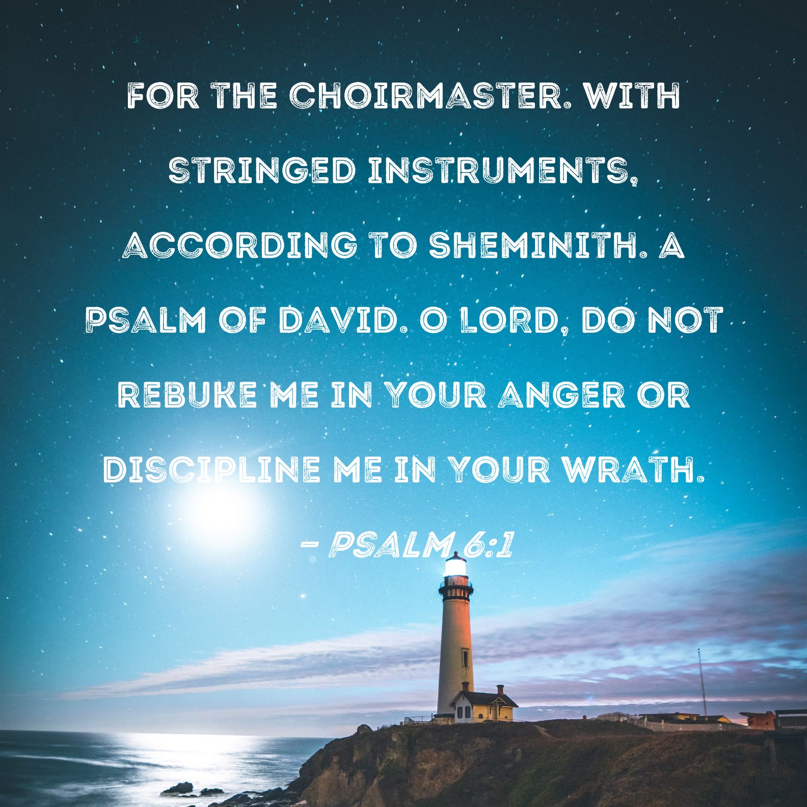 Psalm 6:1 For the choirmaster. With stringed instruments, according to Sheminith. A Psalm of David. O LORD, do not rebuke me in Your anger or discipline me in Your wrath.