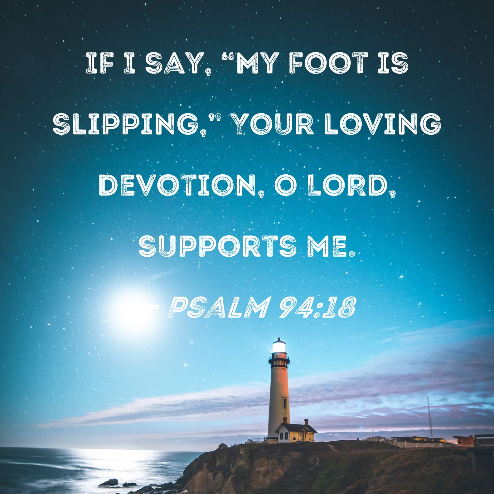 Psalm 94:18 If I say, "My foot is slipping," Your loving devotion, O LORD, supports me.