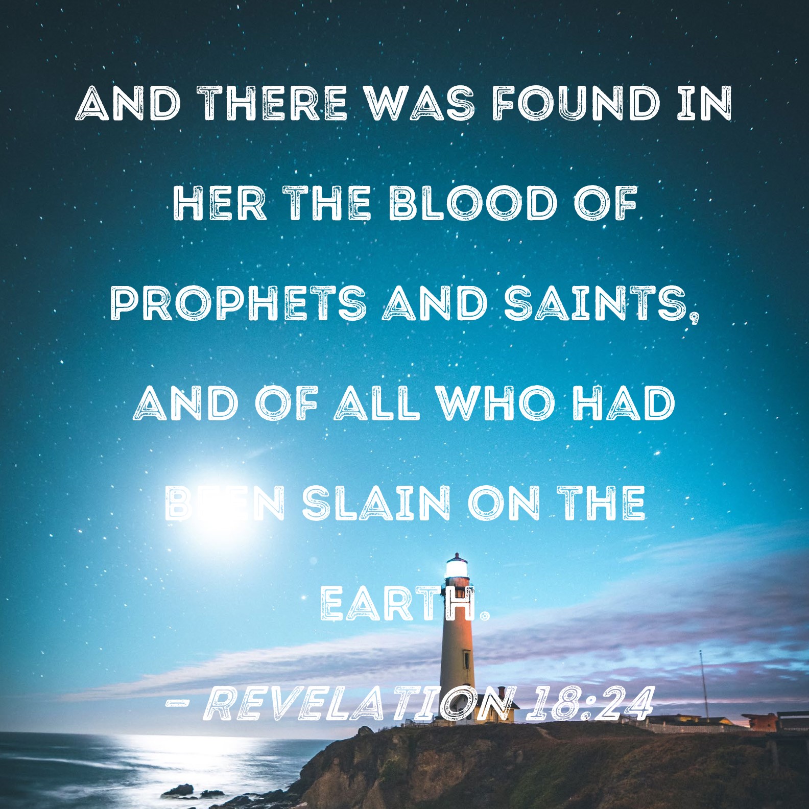 Revelation 18:24 And there was found in her the blood of prophets and saints, and of all who had been slain on the earth.