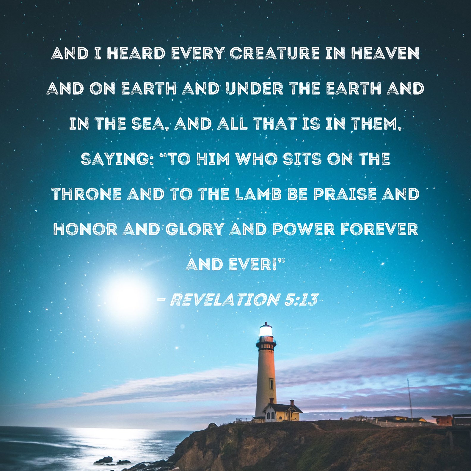 Revelation 5:13 And I heard every creature in heaven and on earth and under the earth and in the sea, and all that is in them, saying: "To Him who sits on the throne and to the Lamb be praise and honor and glory and power forever and ever!"