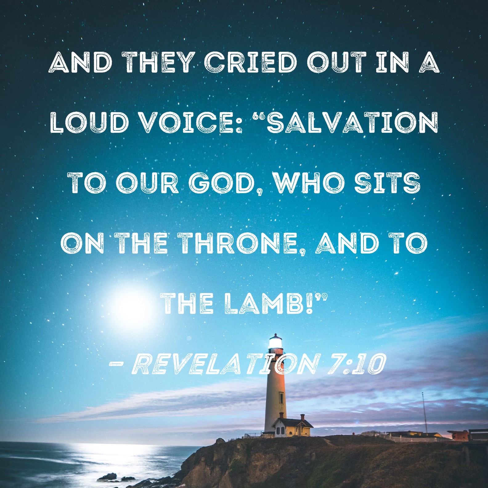 Revelation 7:10 And they cried out in a loud voice: "Salvation to our God, who sits on the throne, and to the Lamb!"
