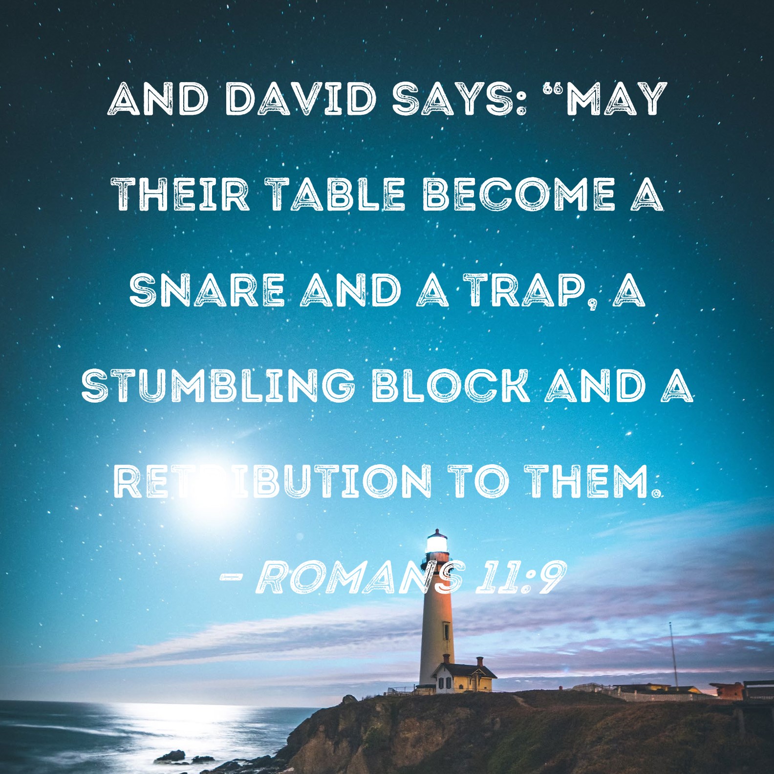 Romans 11:9 And David says: "May their table become a snare and a trap, a stumbling block and a retribution to them.