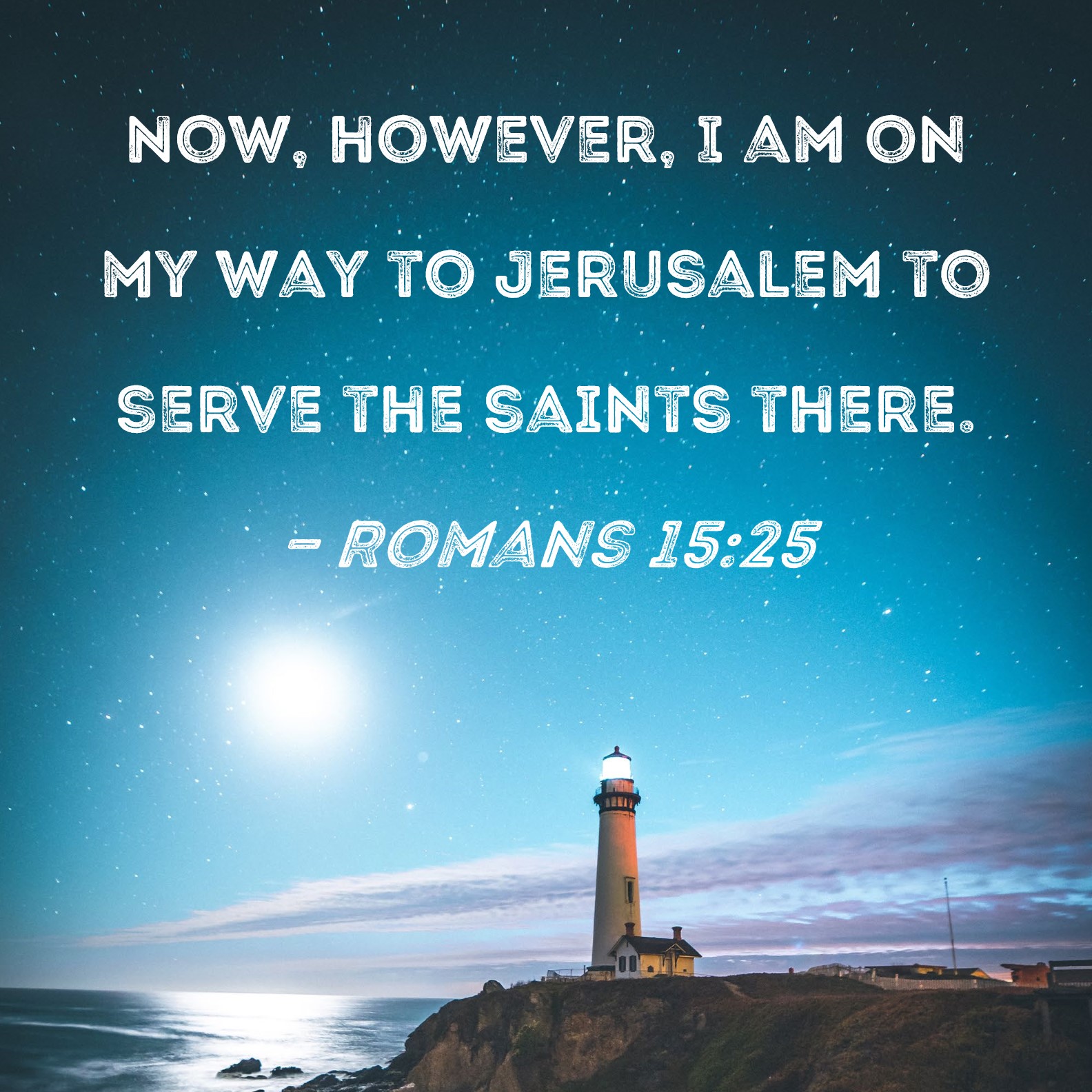 Romans 15:25 Now, however, I am on my way to Jerusalem to serve the saints there.