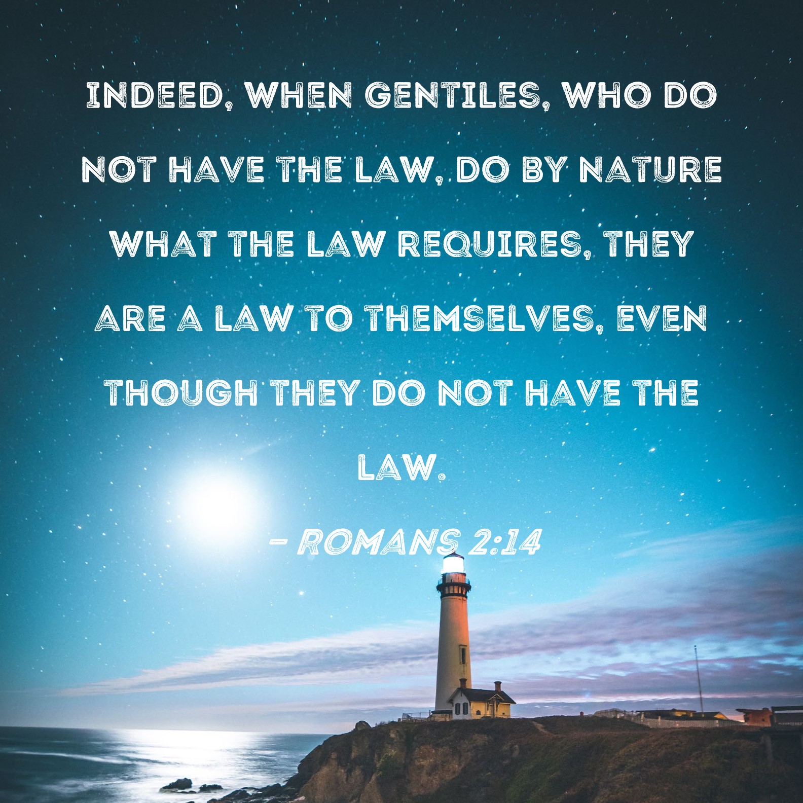 Romans 2:14 Indeed, when Gentiles, who do not have the law, do by nature what the law requires, they are a law to themselves, even though they do not have the law.