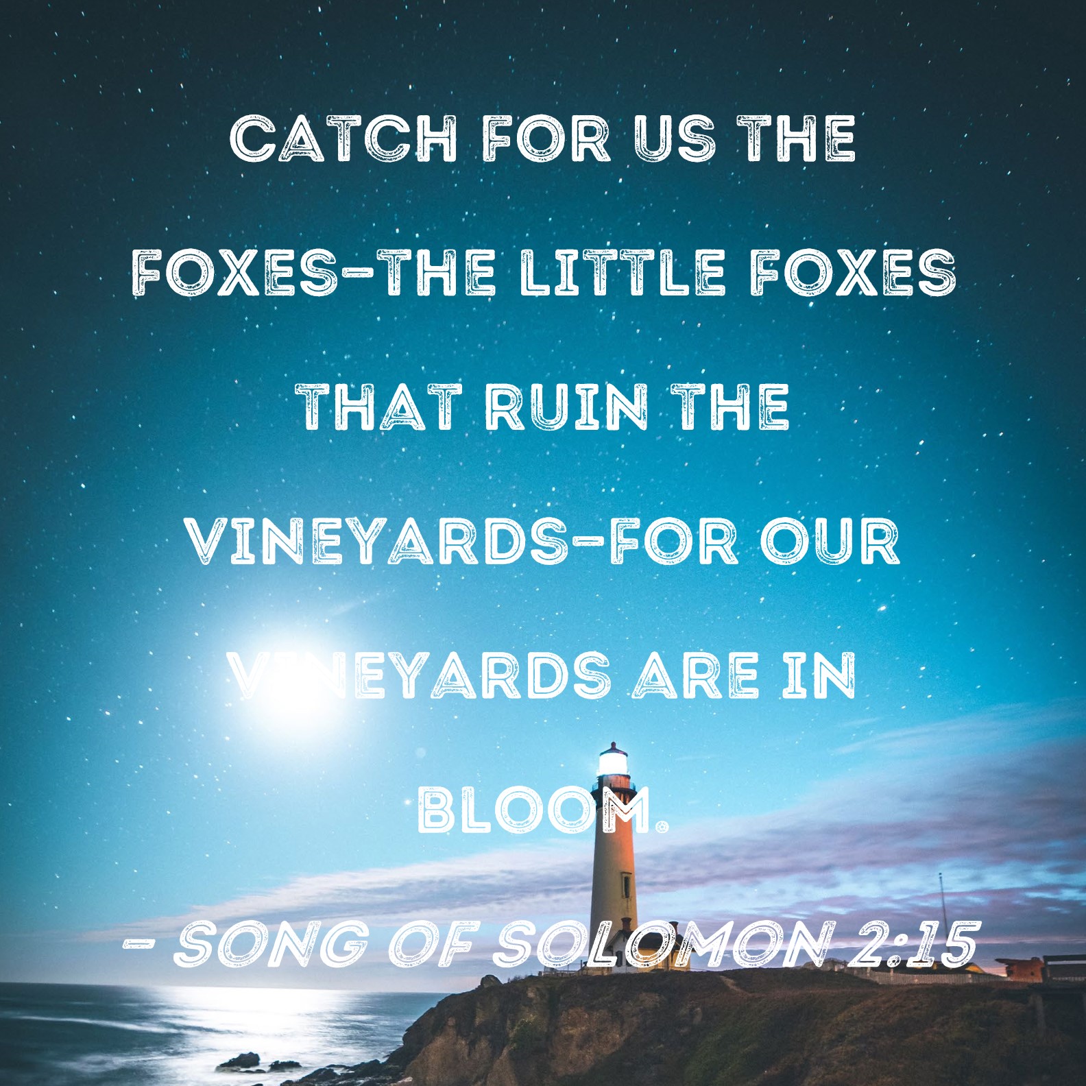 Song of Solomon 2:15 Catch for us the foxes--the little foxes that ruin the vineyards--for our vineyards are in bloom.