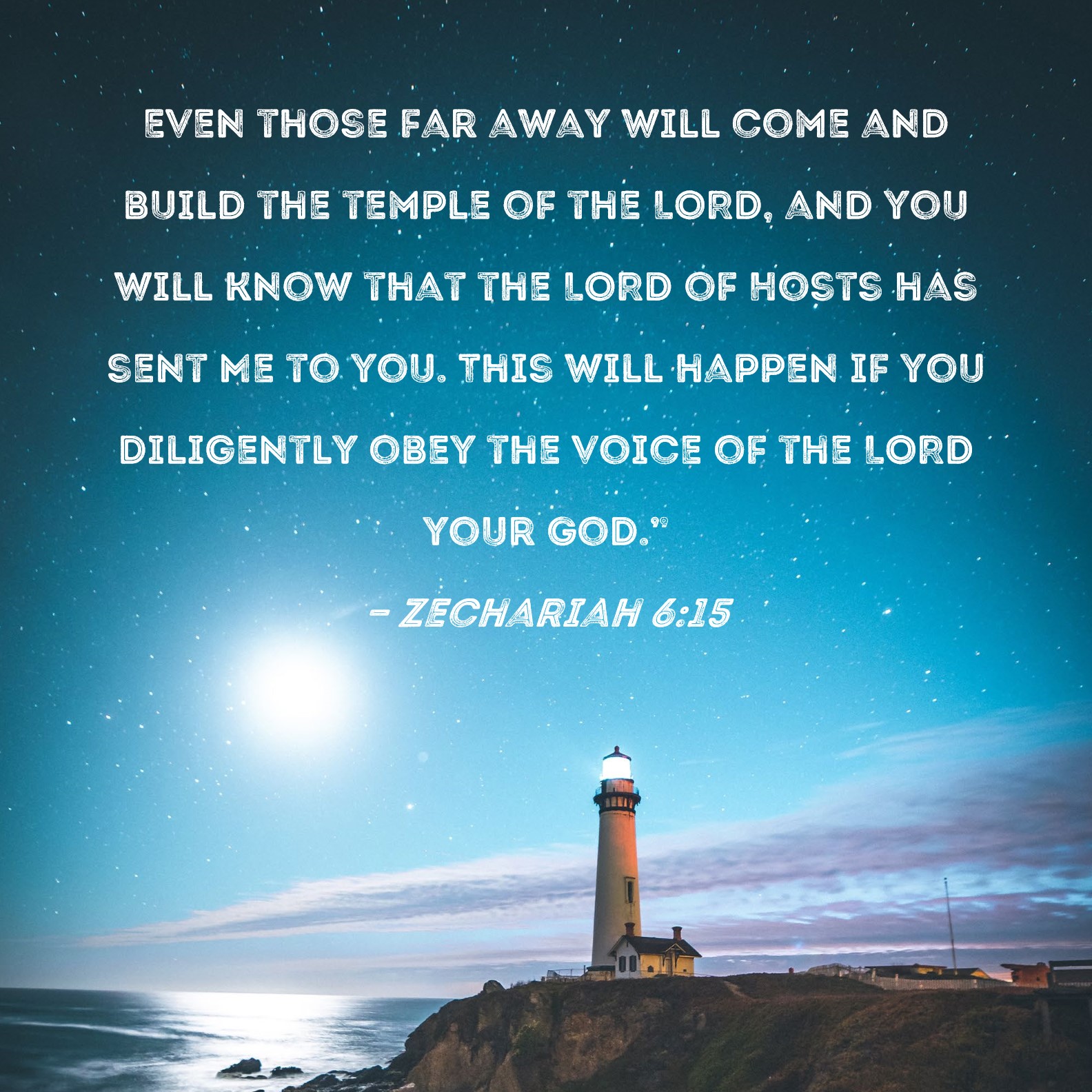 Zechariah 6:15 Even those far away will come and build the temple of the LORD, and you will know that the LORD of Hosts has sent Me to you. This will happen if you diligently obey the voice of the LORD your God."