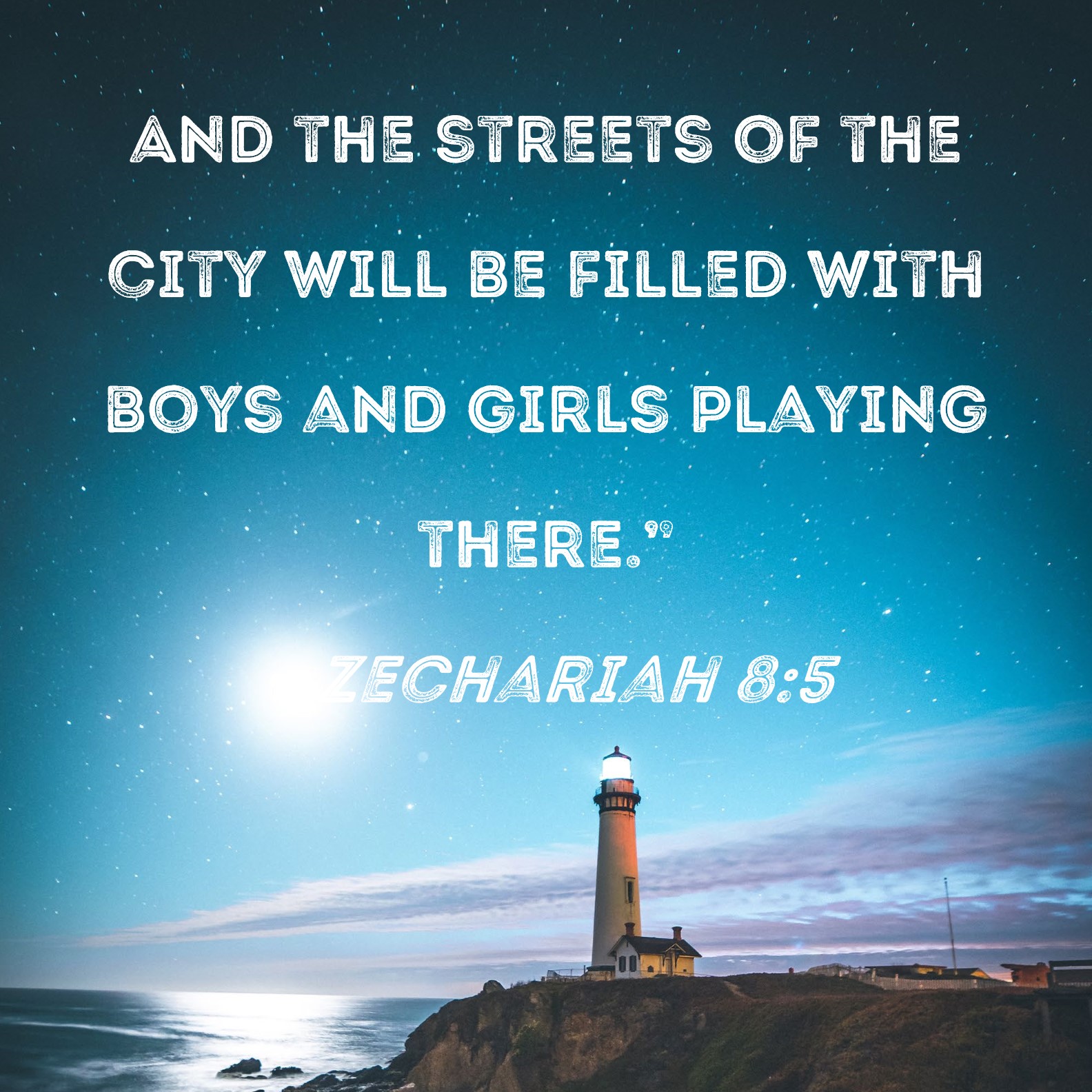 Zechariah 8:5 And the streets of the city will be filled with boys and girls playing there."