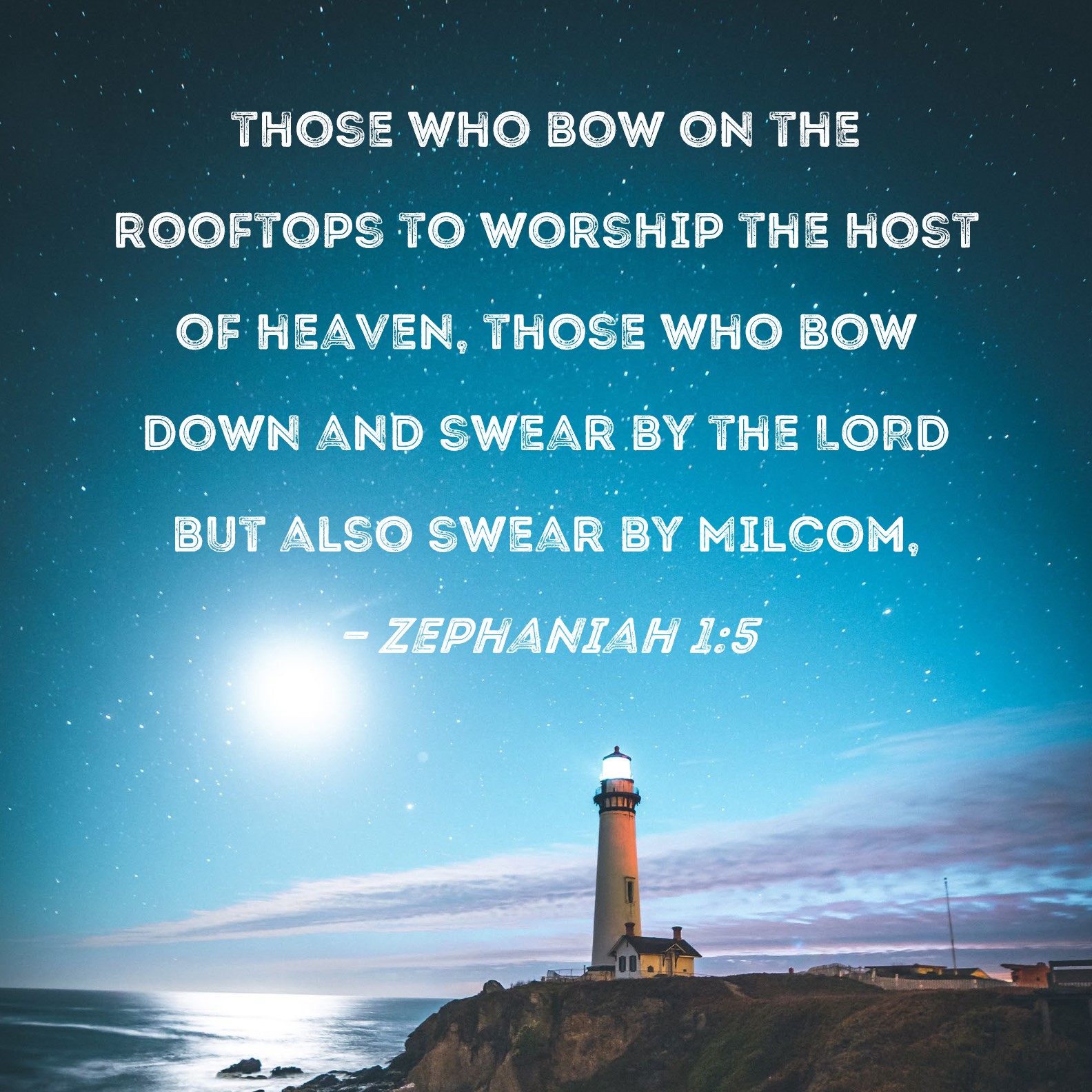 Zephaniah 1:5 those who bow on the rooftops to worship the host of heaven, those who bow down and swear by the LORD but also swear by Milcom,