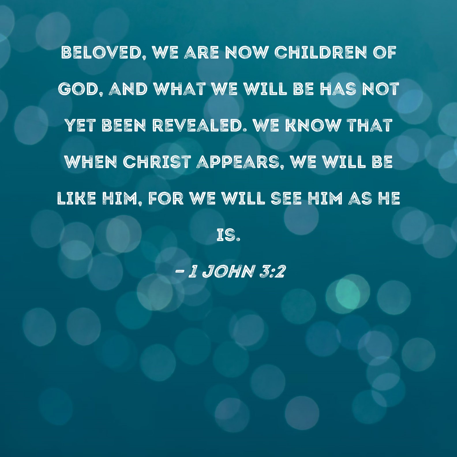 1 John 3:2 Beloved, we are now children of God, and what we will be has not yet been revealed. We know that when Christ appears, we will be like Him, for we will see Him as He is.