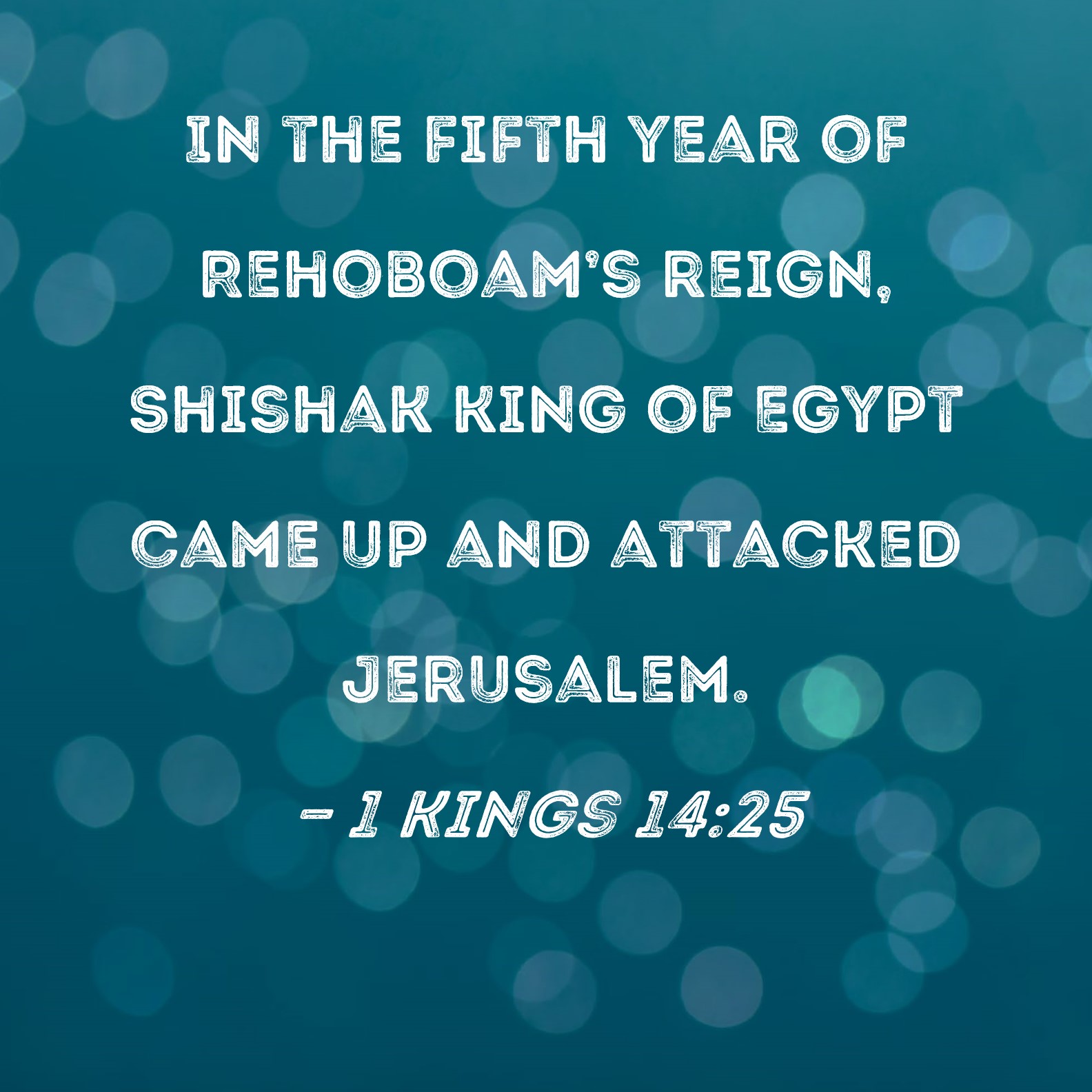 1 Kings 14:25 In the fifth year of Rehoboam's reign, Shishak king of Egypt came up and attacked Jerusalem.
