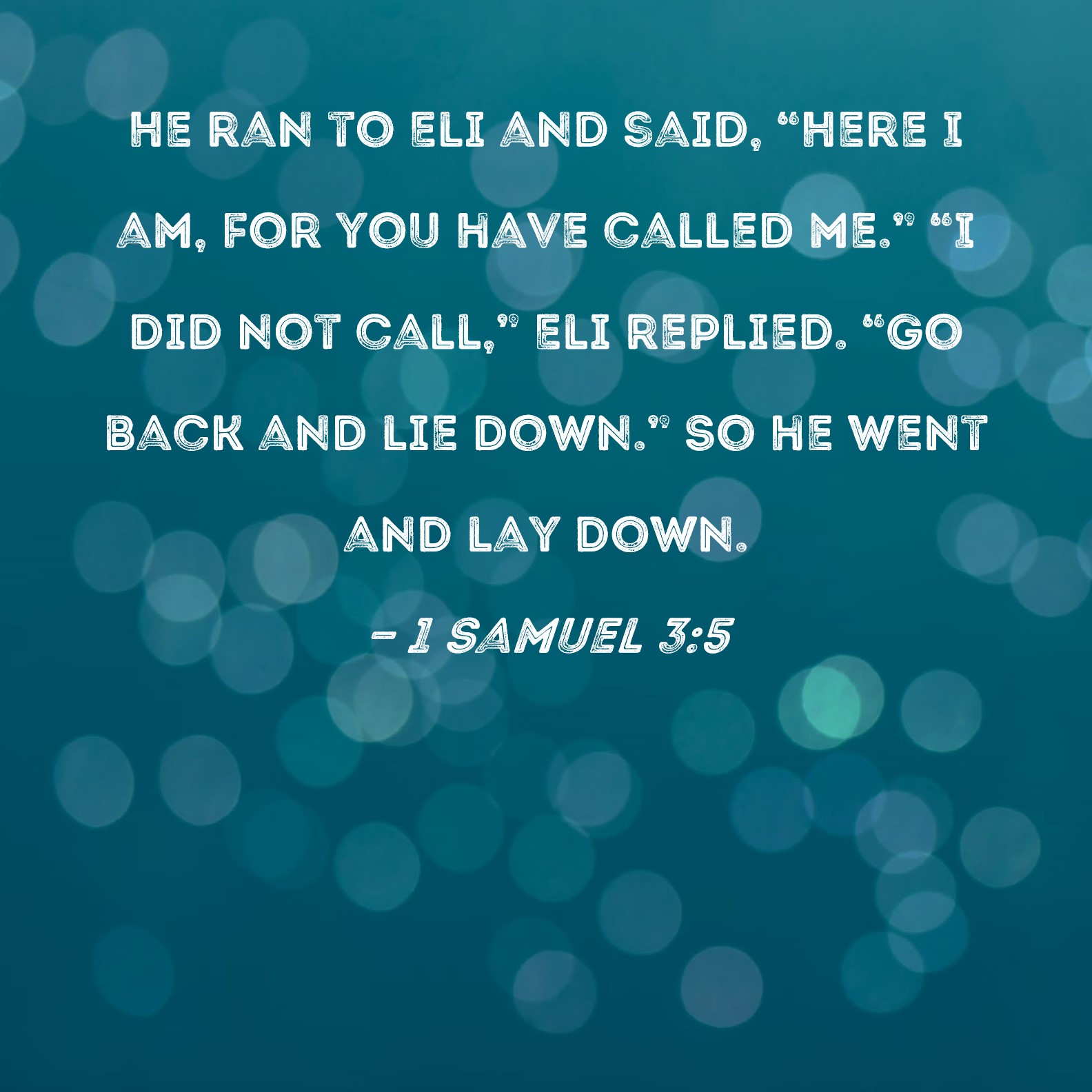 1 Samuel 3:5 He ran to Eli and said, "Here I am, for you have called me." "I did not call," Eli replied. "Go back and lie down." So he went and lay down.