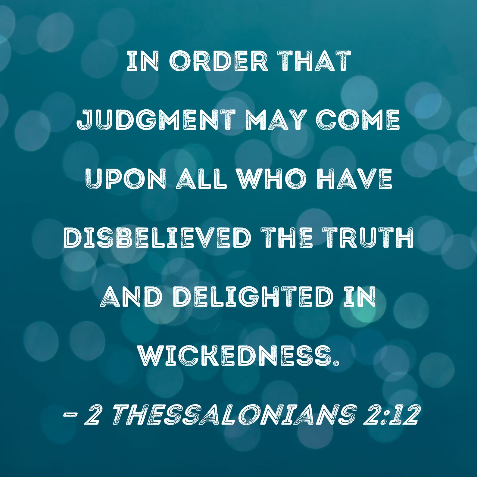 2 Thessalonians 2:12 in order that judgment may come upon all who have disbelieved the truth and delighted in wickedness.
