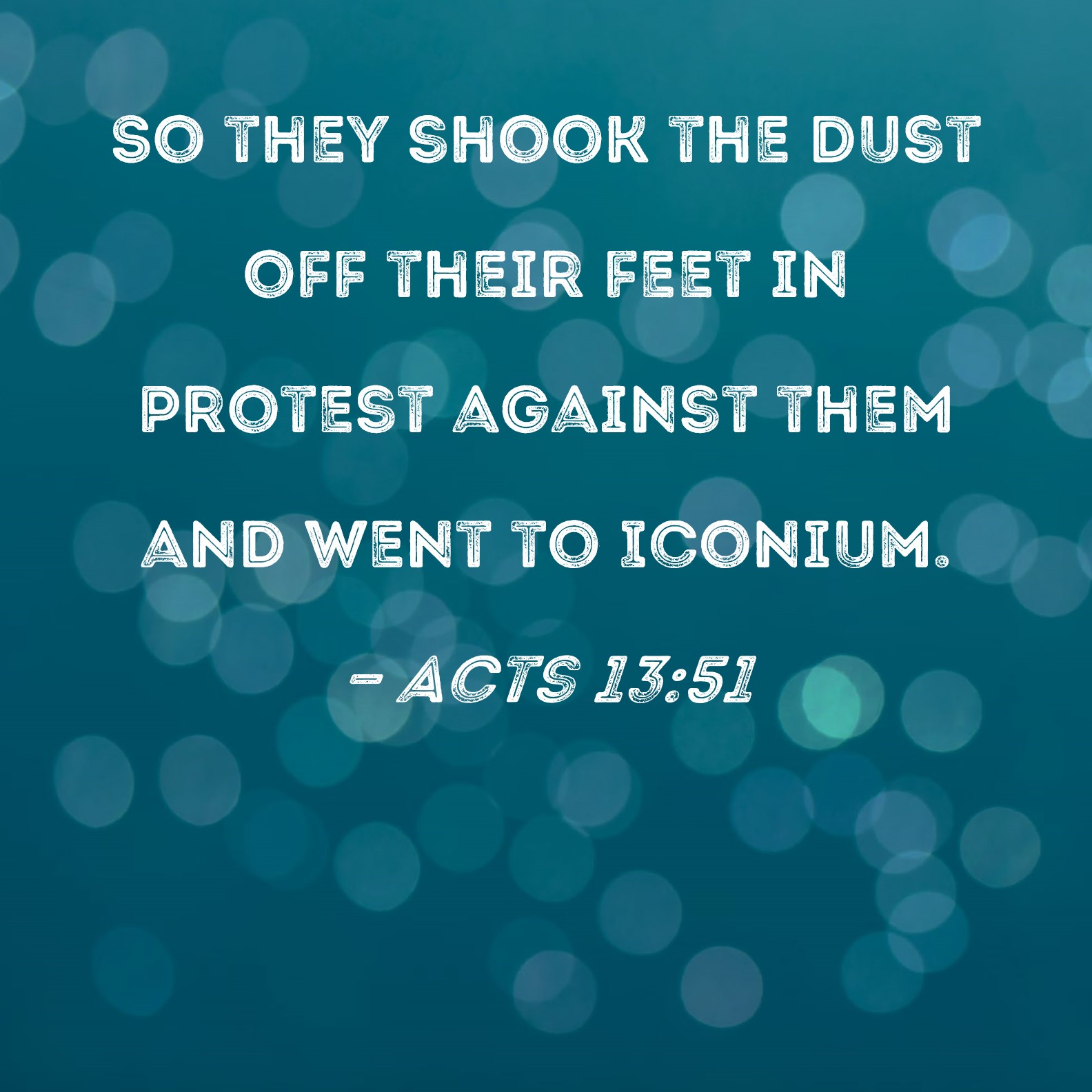 Acts 13:51 So they shook the dust off their feet in protest against them and went to Iconium.